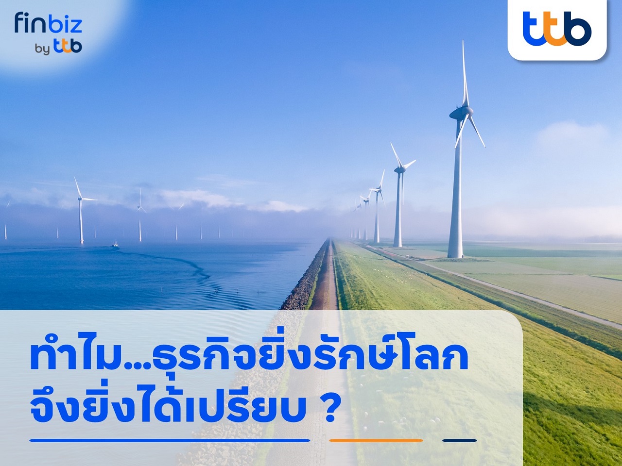 ทุกธุรกิจย่อมต้องการเติบโต แต่จะดีกว่าไหมถ้าเป็นการเติบโตอย่างยั่งยืน ซึ่งความยั่งยืนนั้นจะเกิดขึ้นไม่ได้เลย หากธุรกิจที่กำลังดำเนินอยู่ไม่ได้ส่งเสริมความยั่งยืนของโลกด้วย ยิ่งในสถานการณ์ปัจจุบันที่โลกกำลังเผชิญกับปัญหาการเปลี่ยนแปลงสภาพภูมิอากาศ (Climate Change) ทุกภาคส่วนจึงต้องร่วมมือกันเพื่อฟื้นฟูและแก้ไขอย่างเร่งด่วน finbiz by ttb มองว่า ธุรกิจที่รักษ์โลก จะสร้างความได้เปรียบกว่า และสามารถเติบโตได้อย่างยั่งยืน