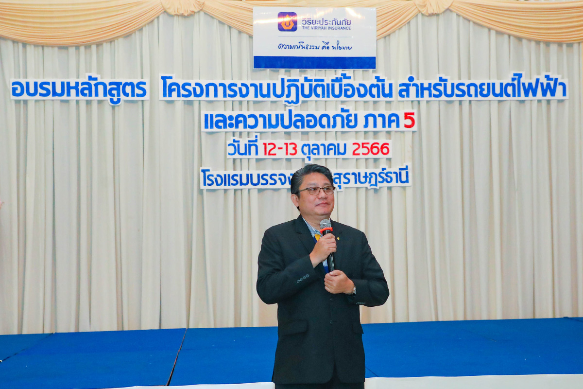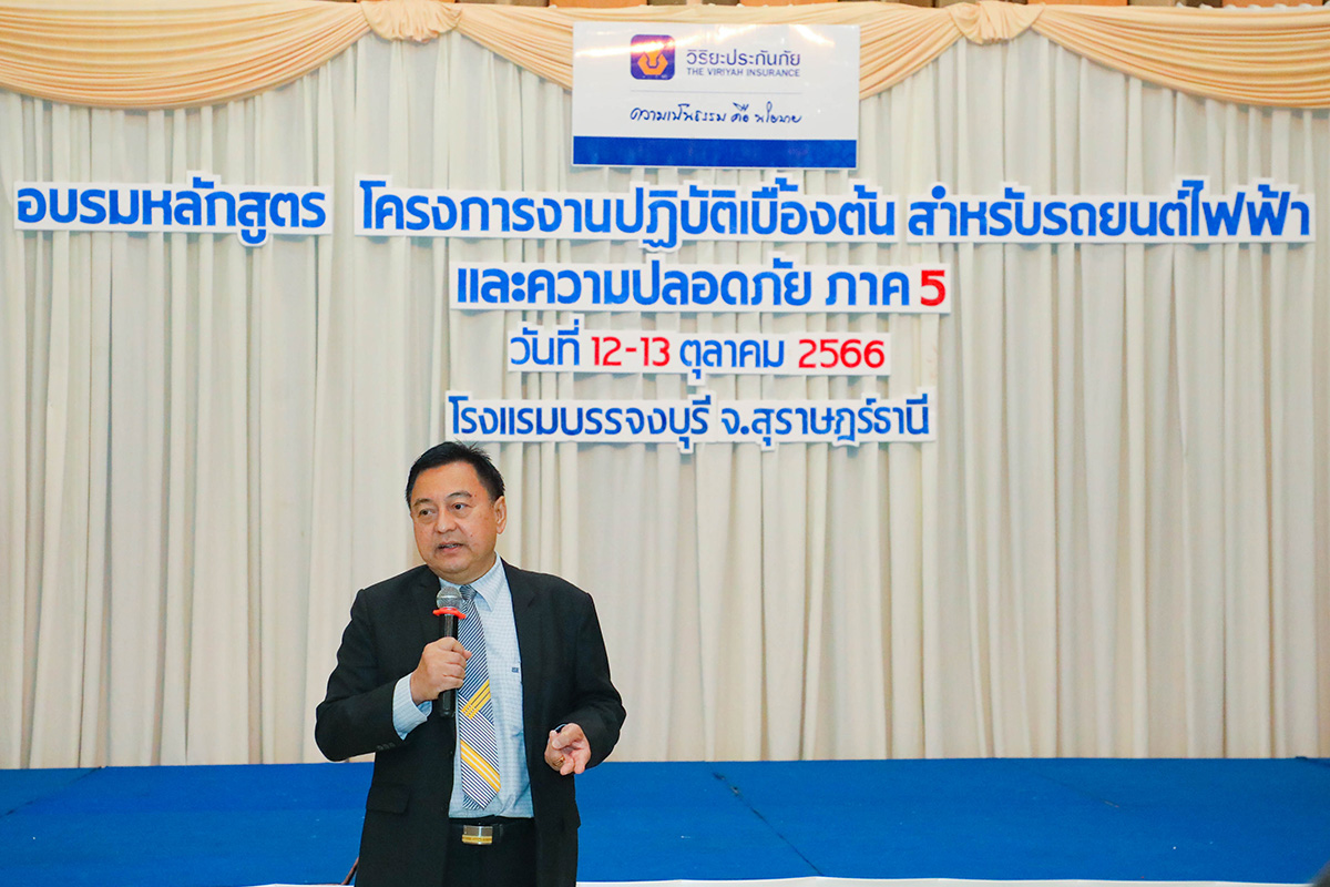 นายสุกันต์ เดชเจริญ ผู้จัดการฝ่ายปฏิบัติการภาค 5 (ภาคใต้) ด้านศูนย์ปฏิบัติการสินไหมทดแทน บริษัท วิริยะประกันภัย จำกัด (มหาชน) เป็นประธานเปิดการอบรมหลักสูตร “การปฏิบัติเบื้องต้นสำหรับรถยนต์ไฟฟ้าและความปลอดภัย”