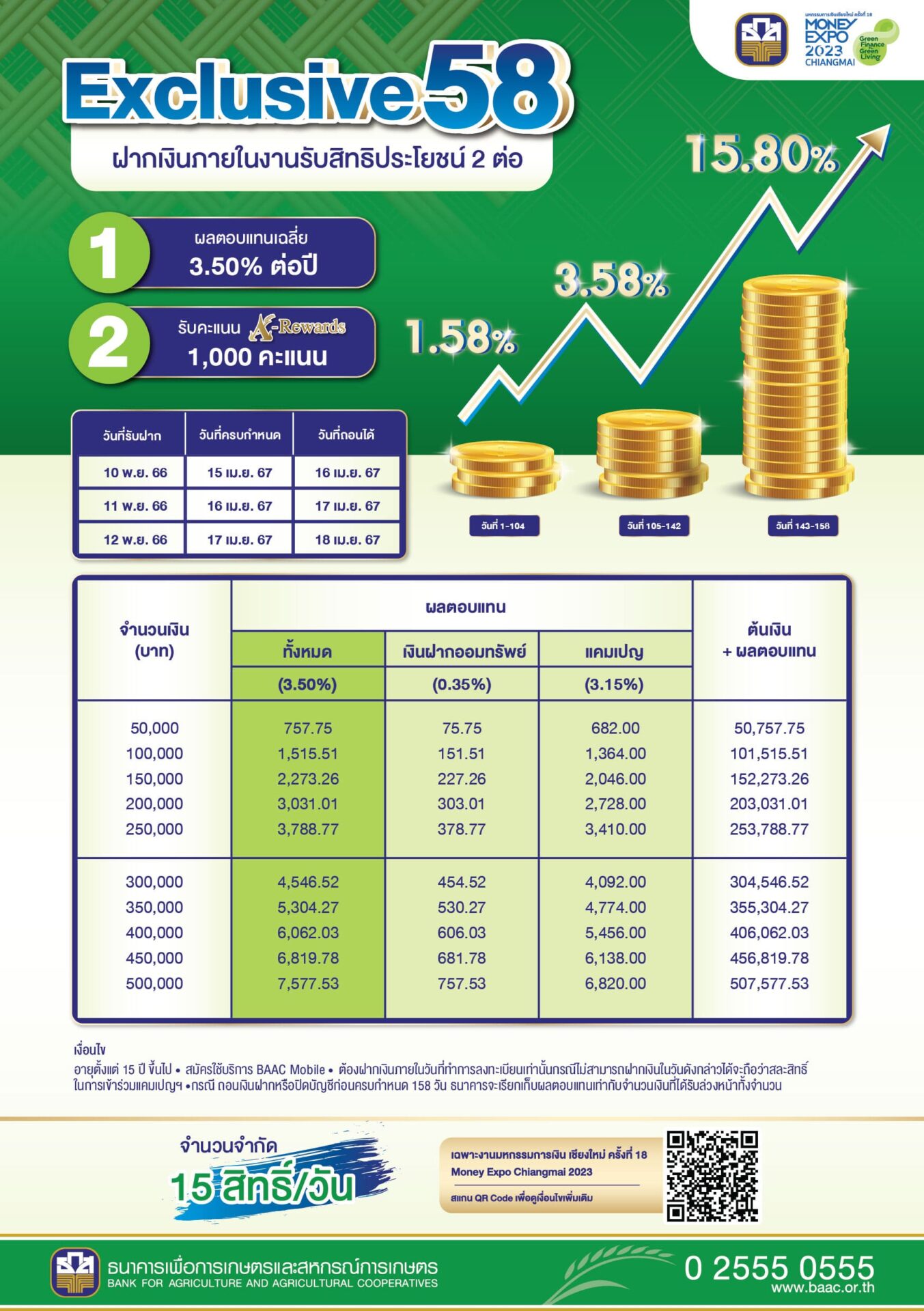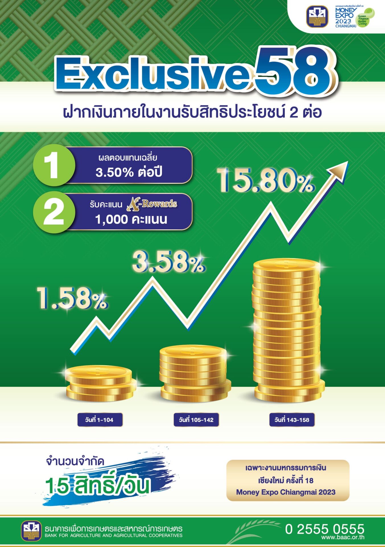 ธ.ก.ส. ชวนออมเงินแคมเปญ Exclusive 58 รับดอกเบี้ยสูงสุด 15.80% และ A-Rewards กว่า 1,000 คะแนน ในงาน Money Expo เชียงใหม่