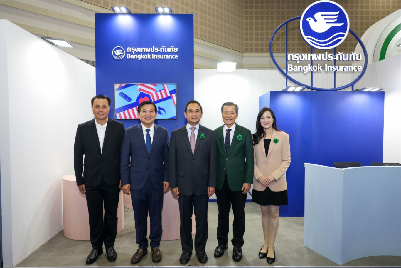 บริษัท กรุงเทพประกันภัย จำกัด (มหาชน) ร่วมออกบูทงานมหกรรมการเงินเชียงใหม่ ครั้งที่ 18 Money Expo 2023 ภายใต้แนวคิด Green Finance for Green Living การเงินสีเขียว เพื่อชีวิตสีเขียว โดยมี นายธีรยุทธ กิจวรพัฒน์ (ที่ 2 จากซ้าย) ผู้อำนวยการ ธุรกิจสาขาและการร่วมทุน และนายอลงกรณ์ กาศทิพย์ (ซ้าย) ผู้จัดการภาค ธุรกิจสาขาและการร่วมทุน เป็นผู้แทนบริษัทฯ ให้การต้อนรับ นายกฤษฎา จีนะวิจารณะ (กลาง) รัฐมนตรีช่วยว่าการกระทรวงการคลัง นายสันติ วิริยะรังสฤษฎ์ (ที่ 2 จากขวา) และ นางสาวภริตา วิริยะรังสฤษฎ์ (ขวา) ประธานจัดงานมหกรรมการเงิน Money Expo 2023 ในโอกาสเยี่ยมชมบูทกรุงเทพประกันภัย