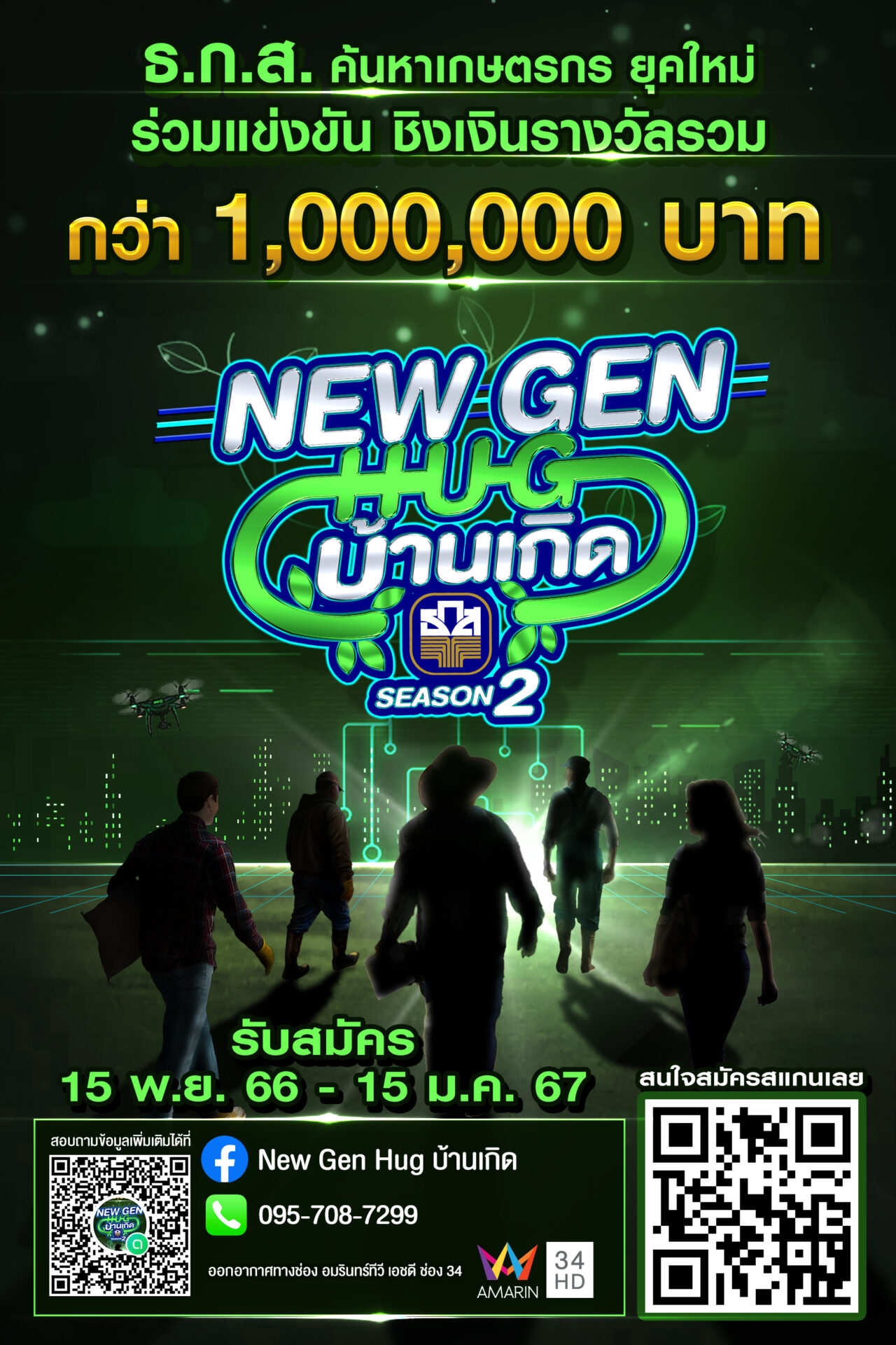 ธ.ก.ส. เฟ้นหาคนรุ่นใหม่สู่การเป็นเกษตรกรต้นแบบในโครงการ New Gen Hug บ้านเกิด Season 2 ชิงเงินรางวัลสูงสุด 5 แสนบาท รวมเงินรางวัลกว่า 1,000,000 บาท เพื่อสานต่อการยกระดับภาคเกษตรกรรมไปสู่การทำธุรกิจแบบ Next Normal บนหลักเศรษฐกิจพอเพียง ควบคู่กับการใช้นวัตกรรมและเทคโนโลยีสมัยใหม่ อันเป็นการยกระดับธุรกิจเกษตรไปสู่เกษตรมูลค่าสูง สมัครได้แล้ววันนี้ผ่าน https://newgenhugbaankerd2.com