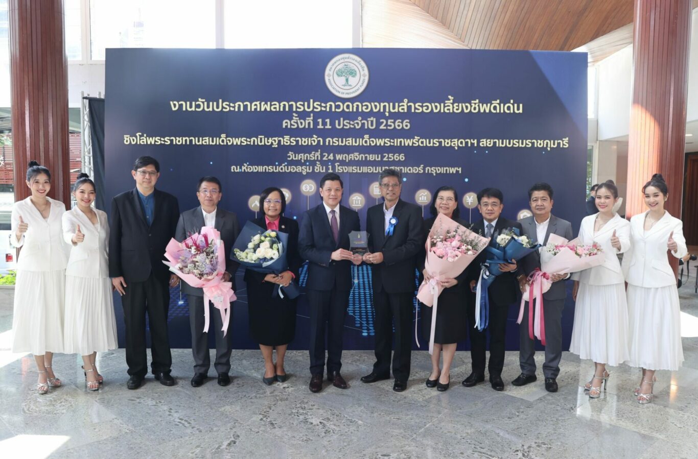 ซึ่ง ธนาคารออมสิน ได้รับรางวัลชนะเลิศประเภทกองทุนเดี่ยว (Single Fund) กองทุนสำรองเลี้ยงชีพ กลุ่มหน่วยงานรัฐวิสาหกิจ ขนาดกองทุนระหว่าง 15,000 – 20,000 ล้านบาท โดยมี นายพินิจ แดนมณี รองผู้อำนวยการธนาคารออมสิน เข้ารับโล่พระราชทานสมเด็จพระกนิษฐาธิราชเจ้า กรมสมเด็จพระเทพรัตนราชสุดาฯ สยามบรมราชกุมารี และมีคณะผู้บริหาร คณะกรรมการกองทุนสำรองเลี้ยงชีพธนาคารออมสิน ร่วมแสดงความยินดี ณ โรงแรมแอมบาสซาเดอร์ กรุงเทพฯ เมื่อวันที่ 24 พฤศจิกายน 2566