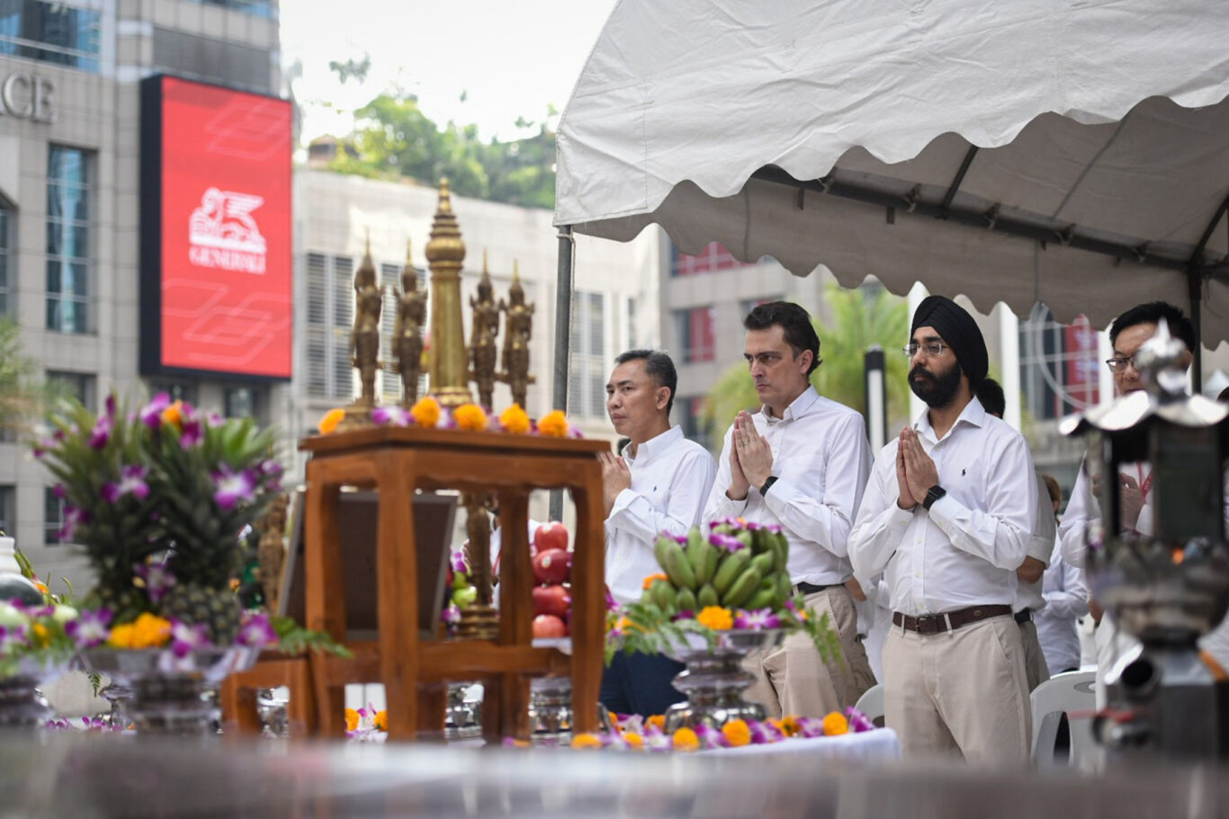นาย อาร์ช คอลมิ (Mr. Arsh Kaumi) ประธานเจ้าหน้าที่บริหาร กลุ่มบริษัท เจนเนอราลี่ ไทยแลนด์ นำทีมคณะผู้บริหารระดับสูงและพนักงาน เจนเนอราลี่ ไทยแลนด์ จัดพิธีบวงสรวงองค์ท้าวมหาพรหมและทำบุญเนื่องในโอกาสครบรอบ 21 ปีการให้บริการในประเทศไทย