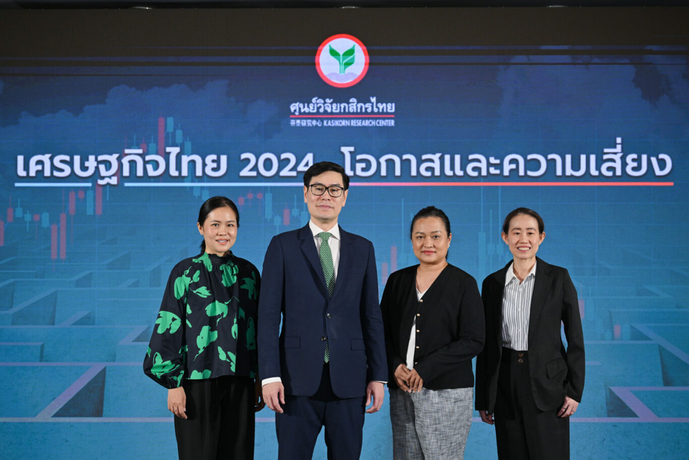 นายบุรินทร์ อดุลวัฒนะ กรรมการผู้จัดการ และ Chief Economist บริษัท ศูนย์วิจัยกสิกรไทย จำกัด เปิดเผยว่า เศรษฐกิจโลกยังชะลอตัวต่อเนื่อง ส่งผลกระทบกับการค้าโลก สะท้อนจากภาคการผลิตที่ชะลอตัวทั่วโลก โดยเฉพาะอย่างยิ่งเศรษฐกิจจีนและเศรษฐกิจเยอรมนีที่พึ่งพาการส่งออกสูง นอกจากนั้น จีนยังคงเผชิญกับปัญหาด้านอสังหาริมทรัพย์ ส่งผลลบกับอุปสงค์ภายในประเทศ ในขณะที่ธนาคารกลางสหรัฐฯ (เฟด) ยังประเมินว่าเศรษฐกิจที่ยังขยายตัวได้ดีอยู่ ส่งผลให้เฟดมีแนวโน้มที่จะคงดอกเบี้ยไว้ที่ระดับสูงในปี 2567 ถึงแม้ว่าตลาดการเงินมองว่ามีโอกาสที่เฟดจะเริ่มลดดอกเบี้ยนโยบายได้ในช่วงครึ่งปีแรกของปี 2567