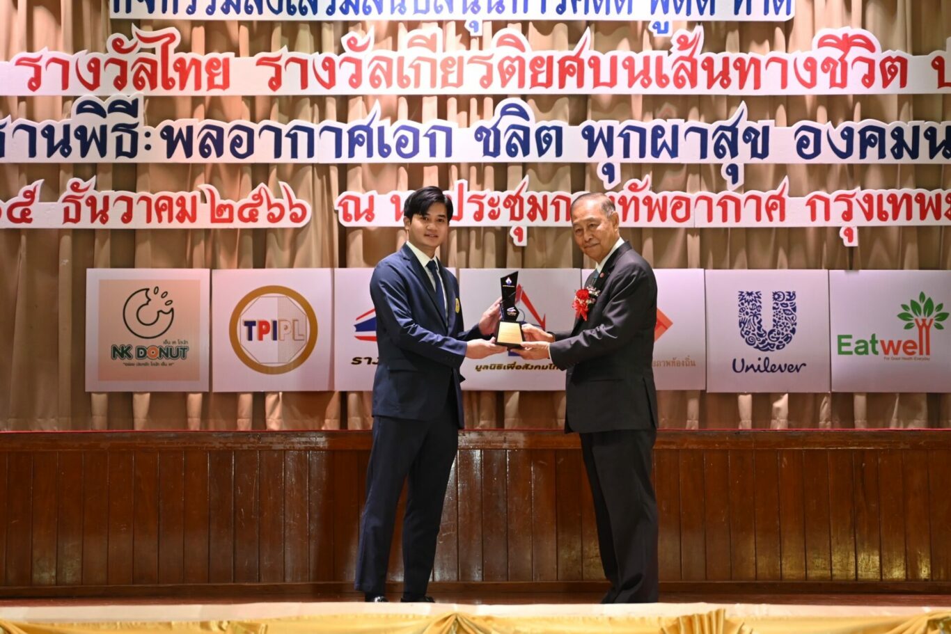 บมจ.หลักทรัพย์ เมย์แบงก์ (ประเทศไทย) เข้ารับรางวัลเกียรติคุณ รางวัลไทย รางวัลเกียรติยศบนเส้นทางชีวิต ในโครงการหนึ่งล้านกล้าความดีตอบแทนคุณแผ่นดิน มูลนิธิเพื่อสังคมไทย ประจำปี 2566 ให้เกียรติมอบโดย พลอากาศเอกชลิต พุกผาสุก องคมนตรี ประธานในพิธี