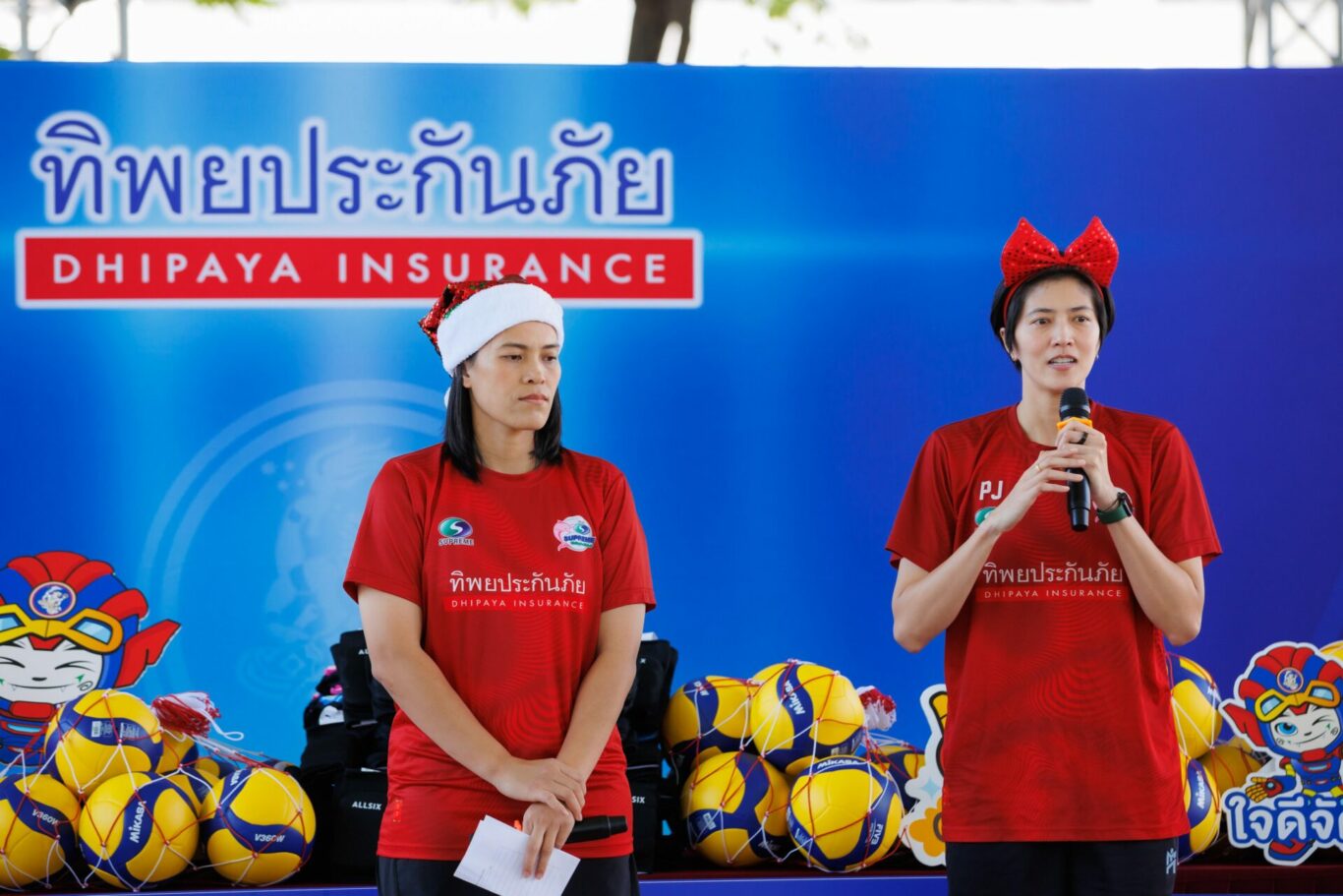 นอกจากนี้ ทิพยประกันภัย ยังคำนึงถึงการพัฒนาทักษะและการนำไปใช้อย่างยั่งยืน ซึ่งต้องใส่ใจถึงอุปกรณ์กีฬาที่มีคุณภาพ จึงได้มอบอุปกรณ์กีฬา เช่น ลูกวอลเลย์บอล จำนวนกว่า 100 ลูก และสนับเข่า จำนวน 120 คู่ เพื่อใช้ในการฝึกซ้อมและนำไปต่อยอดในการพัฒนาตนเองอย่างยั่งยืน สิ่งที่น้อง ๆ ได้รับในครั้งนี้ถือเป็นของขวัญที่มีคุณค่าที่จะพาน้อง ๆ ไปสู่เส้นทางนักกีฬาในอนาคต และขอเป็นกำลังใจให้ทุกคนประสบความสำเร็จตามที่ตั้งหวังไว้”