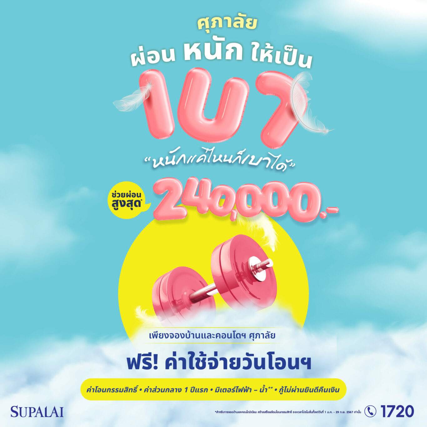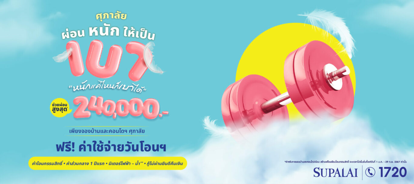 บริษัท ศุภาลัย จำกัด (มหาชน) จัดโปรโมชันฉ่ำ “ผ่อนหนัก…ให้เป็นเบา” ประเดิมปีมังกร ยกทัพโครงการบ้านและคอนโดฯพร้อมอยู่ เสิร์ฟข้อเสนอช่วยผ่อนสูงสุด 240,000 บาท! พร้อมฟรี! ค่าใช้จ่ายวันโอน