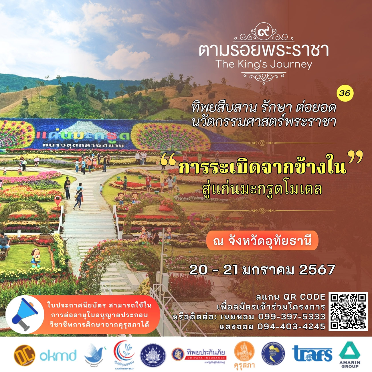 เชิญร่วมตามรอยพระราชาครั้งที่ 36 ในวันเสาร์ที่ 20 – วันอาทิตย์ที่ 21 มกราคม 2567 (2 วัน 1 คืน) ณ โครงการพื้นที่ต้นแบบบูรณาการแก้ไขปัญหาและพัฒนาพื้นที่ตำบลแก่นมะกรูด จังหวัดอุทัยธานี