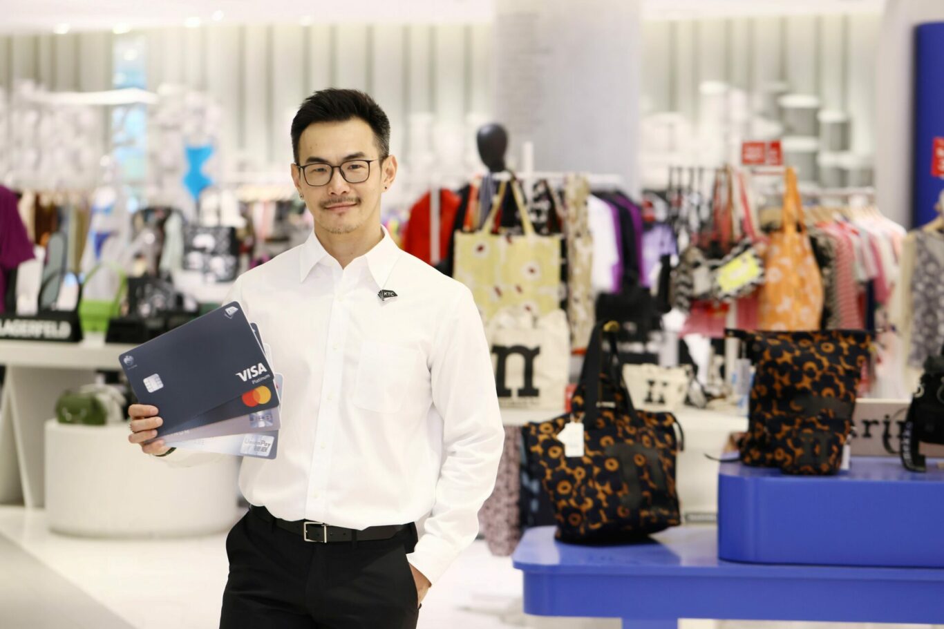 สิทธิพิเศษ แลกรับส่วนลดเพิ่มสูงสุด 18% เมื่อใช้จ่ายผ่านบัตรเครดิตฯ ที่ห้างสรรพสินค้าชั้นนำที่ร่วมรายการได้แก่ ห้างสรรพสินค้าเซ็นทรัลทุกสาขา / ห้างสรรพสินค้าเดอะมอลล์และเดอะมอลล์ ไลฟ์สโตร์ทุกสาขา /  ห้างสรรพสินค้าเอ็มโพเรียม / เอ็มควอเธียร์และดิเอ็มสเฟียร์ เฉพาะโซนดีพาร์ทเม้นท์สโตร์ / ห้างสรรพสินค้าพารากอน / ห้างสรรพสินค้าบลูพอร์ต หัวหิน / ห้างสรรพสินค้าสยามทาคาชิมายะ / สยามดิสคัฟเวอรี่เฉพาะในส่วนของพื้นที่โอเพ่น สเปซ (เคาน์เตอร์แบรนด์สินค้าที่ร่วมรายการ) และไอคอนสยามเฉพาะในส่วนของพื้นที่โอเพ่น สเปซ (เคาน์เตอร์แบรนด์สินค้าที่ร่วมรายการ)