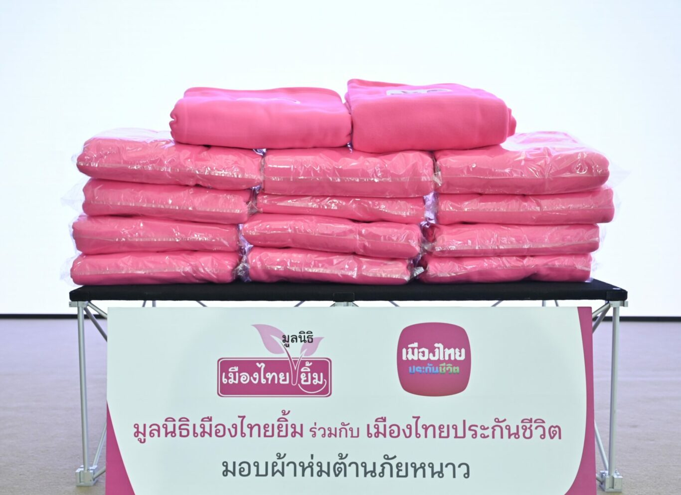 ในโอกาสนี้ บริษัทฯ ได้ร่วมมือกับมูลนิธิเมืองไทยยิ้ม ดำเนินกิจกรรมเพื่อสังคมสานต่อโครงการ “ห่มรัก” ปีที่ 13 มอบผ้าห่มอัพไซคลิงให้แก่ประชาชนที่ประสบภัยหนาวในหลายจังหวัด เพื่อขานรับนโยบายภาครัฐในการลดปริมาณขยะจากขวดน้ำพลาสติกที่มีปริมาณเพิ่มขึ้นในปัจจุบัน บริษัทฯ จึงได้ผลิตผ้าห่มขึ้นใหม่ที่ใส่ใจต่อสิ่งแวดล้อม ด้วยการตระหนักถึงปัญหาด้านขยะและการใช้พลาสติกมากมาย สำหรับผ้าห่มอัพไซคลิงกันหนาวเมืองไทยประกันชีวิตและมูลนิธิเมืองไทยยิ้มนั้น นำวัสดุรีไซเคิลมาใช้ใหม่ ซึ่งเป็นการให้ความสำคัญกับการนำวัสดุที่ไม่ได้ใช้แล้วกลับมามีคุณค่าในการใช้งานอีกครั้งอย่างมีคุณภาพมากขึ้น