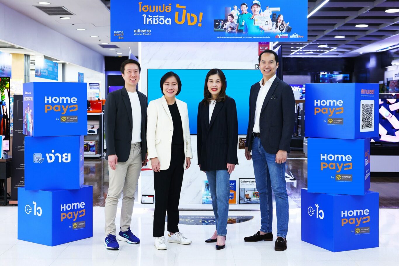 กรุงเทพฯ – 12 มกราคม 2567 : นางสาวพัทธ์หทัย กุลจันทร์ (ที่สองจากซ้าย) กรรมการผู้จัดการใหญ่ บริษัท อยุธยา แคปปิตอล เซอร์วิสเซส จำกัด ในฐานะตัวแทนบัตรเครดิตและสินเชื่อในเครือกรุงศรี คอนซูมเมอร์ ร่วมด้วย นางสาวเสาวณีย์ สิราริยกุล (ที่สองจากขวา) ผู้ช่วยกรรมการผู้จัดการกลุ่มการตลาด บริษัท โฮม โปรดักส์ เซ็นเตอร์ จำกัด (มหาชน) หรือ โฮมโปร เปิดตัว ‘สินเชื่อโฮมเปย์ บาย กรุงศรี เจเนซิส (HomePay by Krungsri Genesis)’ ผลิตภัณฑ์การเงินซื้อก่อนผ่อนทีหลัง (Buy Now Pay Later : BNPL) ที่ให้บริการสินเชื่อโดยบริษัท กรุงศรี เจเนซิส จำกัด บริษัทภายใต้การดำเนินงานของบริษัทอยุธยา แคปปิตอล เซอร์วิสเซสจำกัด ในเครือกรุงศรี คอนซูมเมอร์ เพิ่มทางเลือกในการเข้าถึงสินเชื่อ เพื่อความสะดวกในการบริหารค่าใช้จ่ายสำหรับลูกค้าโฮมโปร สมัครง่ายไม่ต้องใช้เอกสารแสดงรายได้ ไม่มีค่าธรรมเนียมรายปี รู้ผลอนุมัติทันใจไวสุดภายใน 3 นาที ขอวงเงินสินเชื่อได้สูงสุด 100,000 บาท ใช้ผ่อนสินค้าได้ทุกชิ้นทั้งห้างโฮมโปรและเมกาโฮมทุกสาขา ผ่อนสบายนานสูงสุด 36 เดือน ดอกเบี้ยต่ำ 15% ต่อปี พิเศษ! โปรโมชันเปิดตัวสำหรับลูกค้าสมัครใหม่ เริ่มต้นผ่อน 0% เดือนแรก (เงื่อนไขเป็นไปตามที่บริษัทกำหนด) สมัครง่ายผ่านแอปพลิเคชัน UCHOOSE ที่เมนู ‘U CARD & LOAN’ ตั้งเป้าภายในปีแรก มียอดบัญชีลูกค้าใหม่ 120,000 ราย ข้อมูลเพิ่มเติม www.krungsrigenesis.co.th