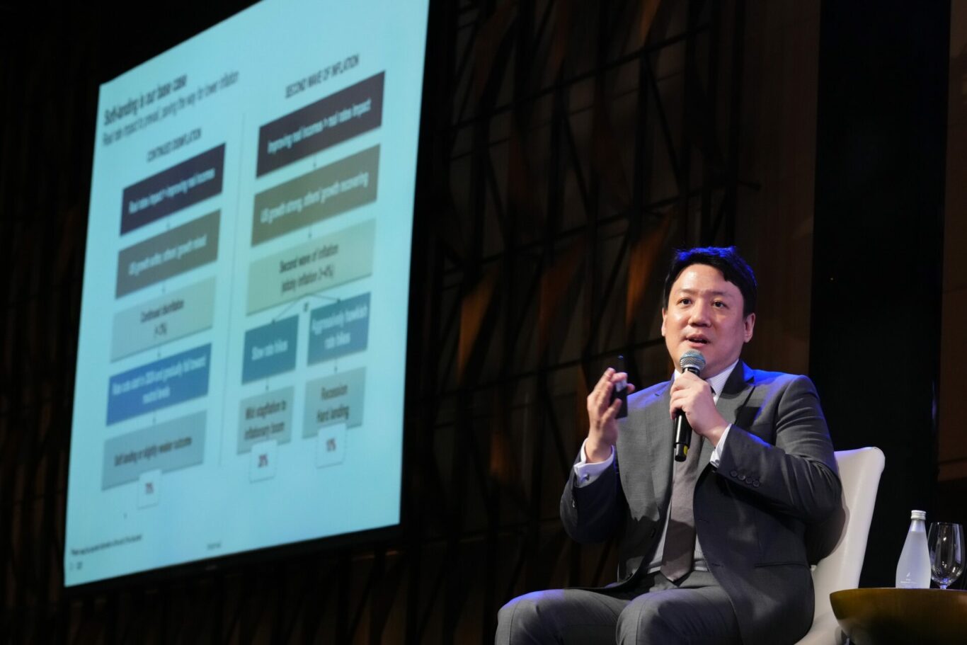 - เงินลงทุนจะไหลเข้าตลาดตราสารหนี้มากขึ้นเพราะดอกเบี้ยอยู่ในระดับสูงและจะลดลงในปี 2567 ตลาดหุ้นยังมีความท้าทายเพราะผลตอบแทนเทียบกับดอกเบี้ยไม่น่าดึงดูดเท่ายุคดอกเบี้ยต่ำ การหาผลตอบแทนต้องเน้นไปที่การคัดเลือกหุ้นที่โดดเด่น
