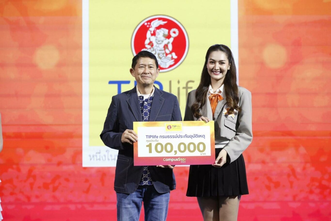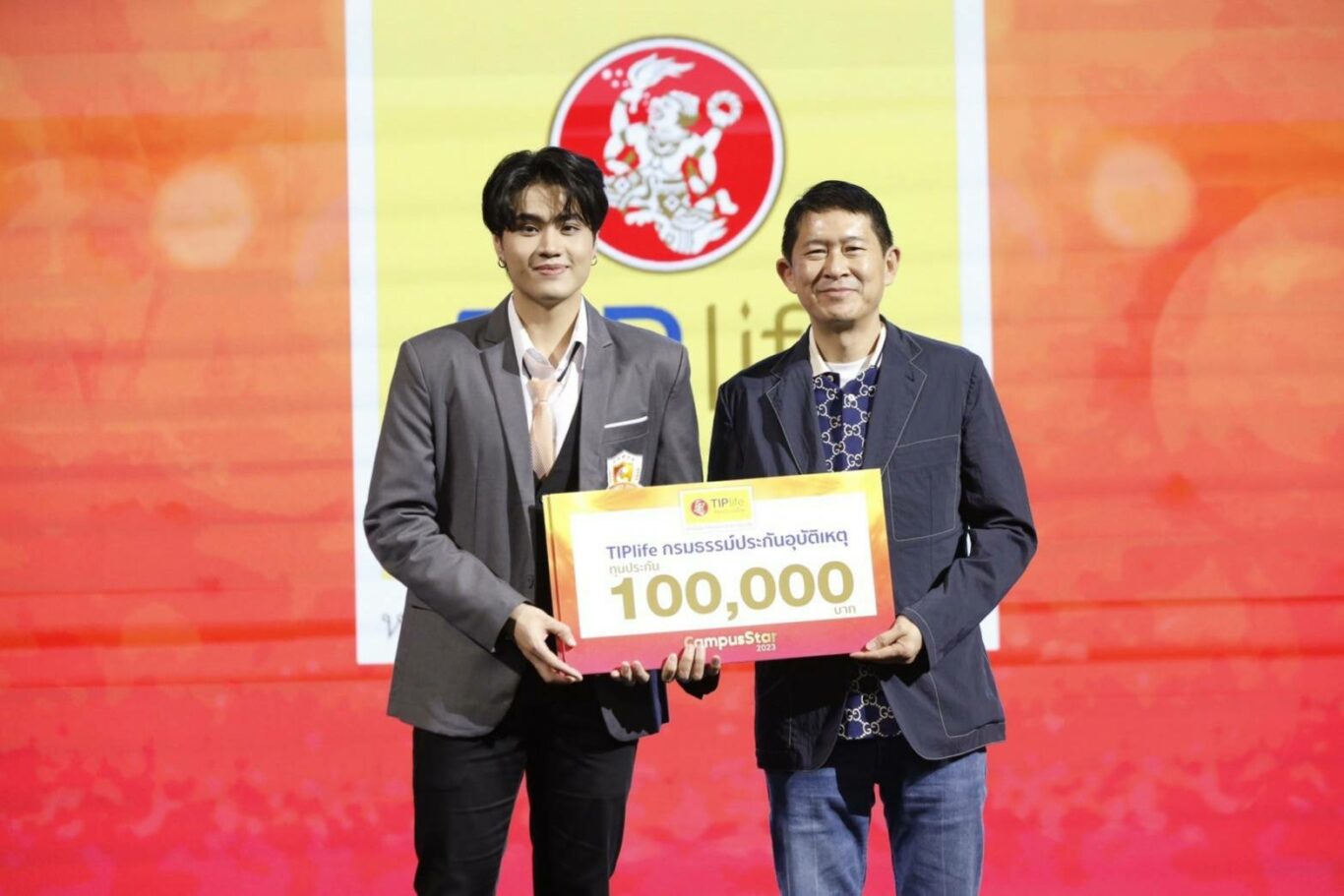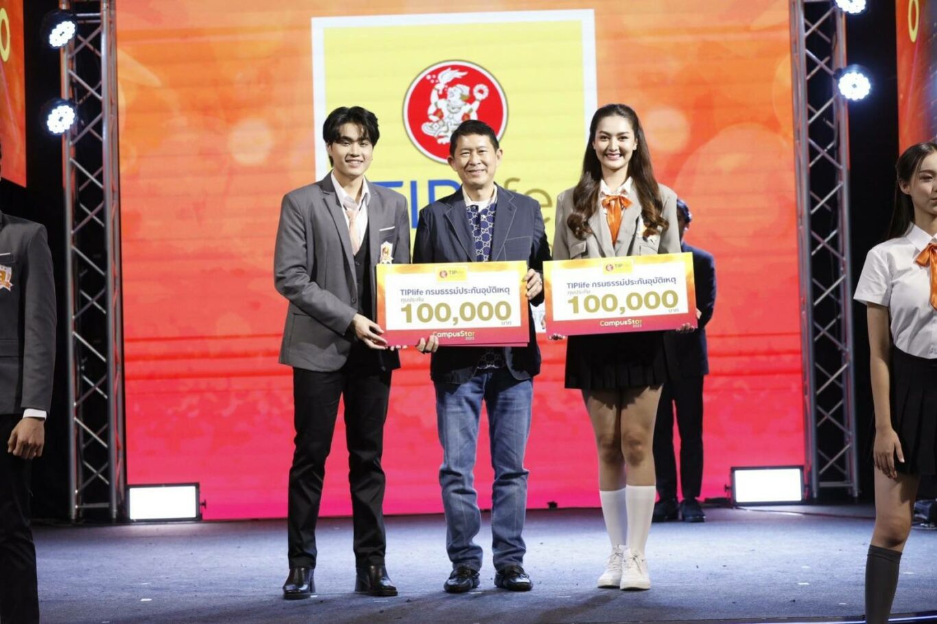 โดยรับมอบทุนการศึกษาคนละ 10,000 บาท และ TIPlife กรมธรรม์ประกันอุบัติเหตุ ทุนประกัน 100,000 บาท จากการประกวดรอบชิงชนะเลิศ “Campus Star 2023” ณ ชั้น 1 โซน Eden ศูนย์การค้าเซ็นทรัลเวิลด์ กรุงเทพฯ เมื่อวันก่อน