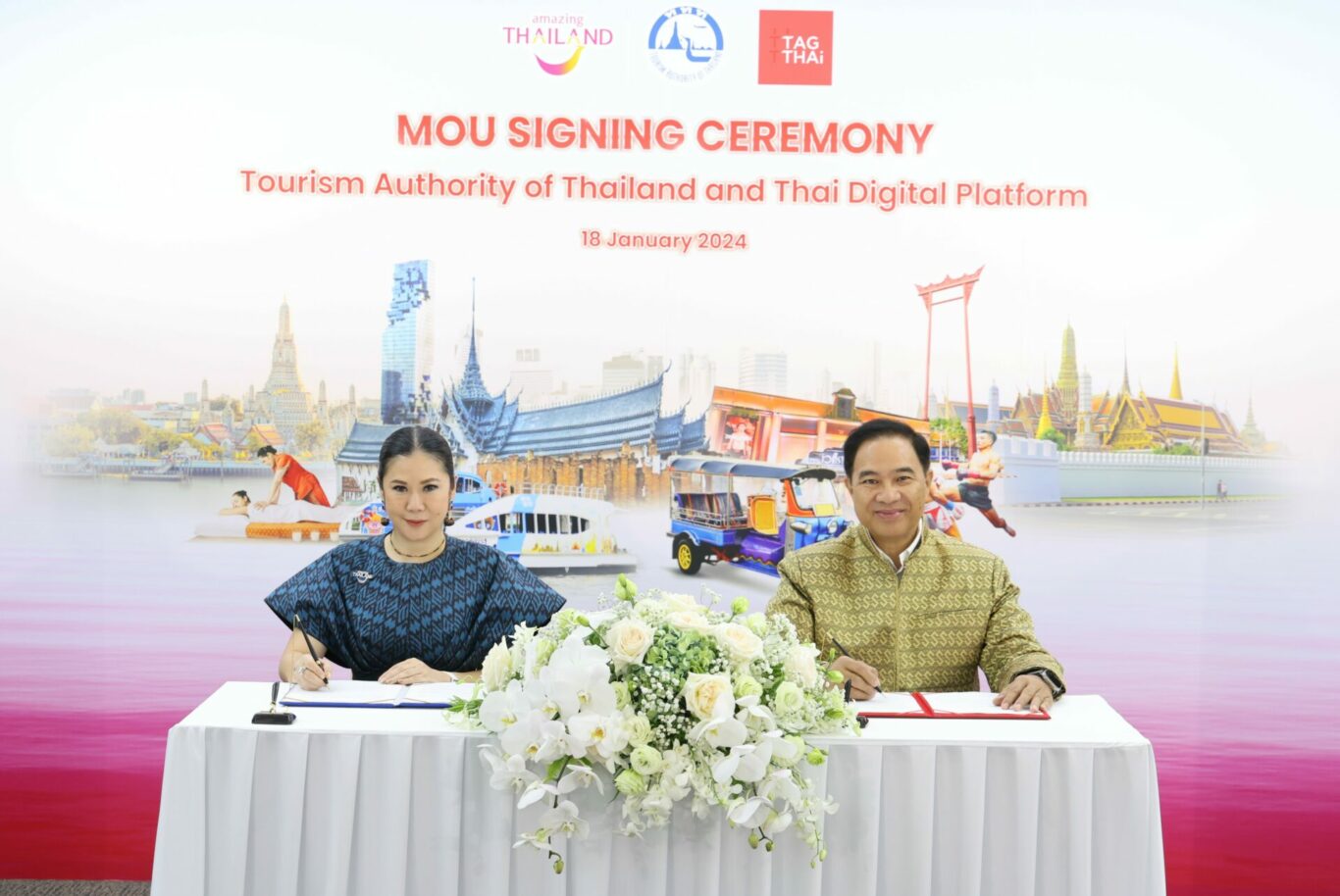 18 มกราคม 2567 การท่องเที่ยวแห่งประเทศไทย (ททท.) และ บริษัท ไทย ดิจิทัล แพลตฟอร์ม วิสาหกิจเพื่อสังคม จำกัด จัดพิธีลงนามบันทึกข้อตกลงความร่วมมือ (MOU) เพื่อสนับสนุนการแลกเปลี่ยนข้อมูลด้านการท่องเที่ยวไทย และผลักดันแอปพลิเคชัน TAGTHAi (ทักทาย) ให้เป็น Thailand’s Official Tourism Platform ด้านการท่องเที่ยวที่น่าเชื่อถือและครบวงจรที่สุดในประเทศไทย โดยข้อตกลงดังกล่าวถือเป็นการตอบรับนโยบายไทยแลนด์ 4.0 ของภาครัฐ ในการนำเทคโนโลยีและข้อมูลของทั้งภาครัฐและเอกชนมาใช้ประโยชน์ เพื่อร่วมขับเคลื่อนโครงสร้างเศรษฐกิจ อุตสาหกรรมท่องเที่ยว