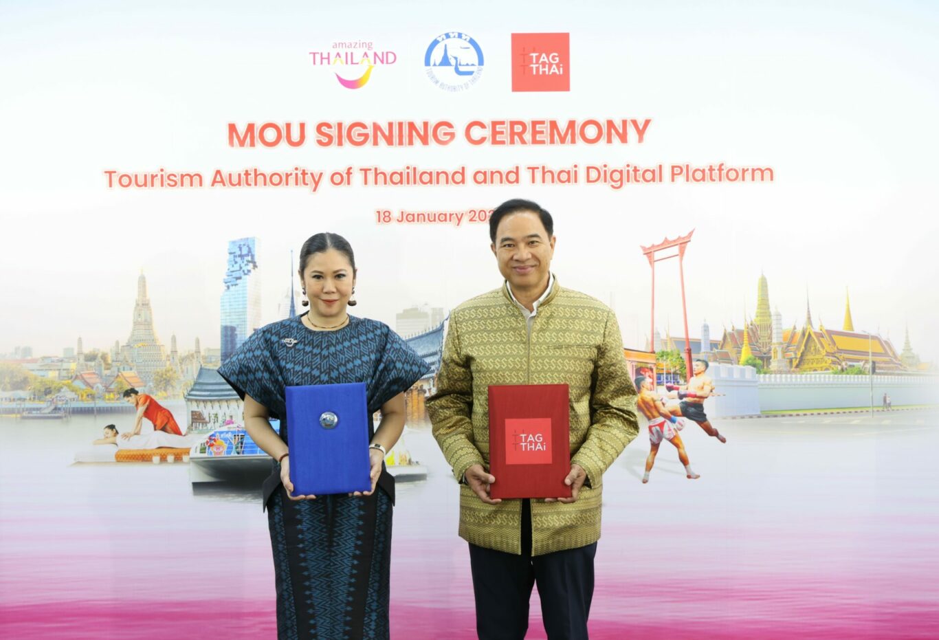 โดยได้รับเกียรติจาก นางสาวฐาปนีย์ เกียรติไพบูลย์ ผู้ว่าการ ททท. นายกลินท์ สารสิน ประธานกิตติมศักดิ์ หอการค้าไทยและสภาหอการค้าแห่งประเทศไทย และประธานคณะจัดการ บริษัท ไทย ดิจิทัล แพลตฟอร์ม วิสาหกิจเพื่อสังคม จำกัด ผู้ร่วมก่อตั้ง TAGTHAi Platform เป็นผู้แทนลงนาม ณ อาคาร ททท. สำนักงานใหญ่
