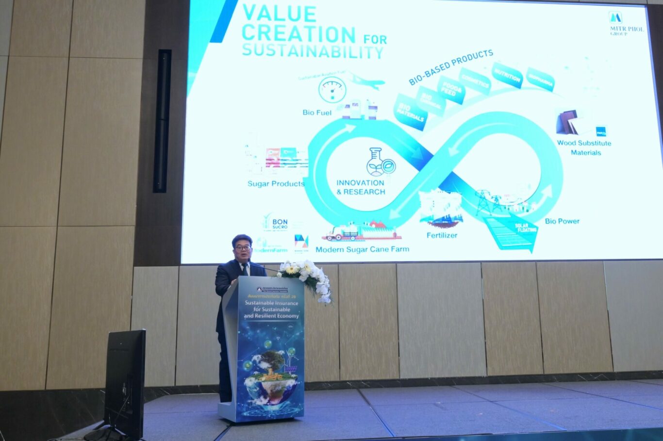 ดร.ศรายุธ แสงจันทร์ กรรมการผู้จัดการกลุ่ม Health Products and Sustainability บริษัท น้ำตาลมิตรผล จำกัด บรรยายพิเศษ หัวข้อ “Lead – Adapt – Change” Sustainability in Action