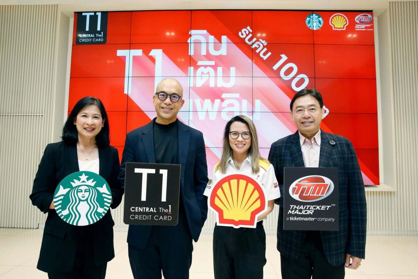กรุงเทพฯ – 23 มกราคม 2567 : อธิศ รุจิรวัฒน์ (ที่ 2 จากซ้าย) กรรมการผู้จัดการ บริษัท เจเนอรัล คาร์ด เซอร์วิสเซส จำกัด ผู้ให้บริการบัตรเครดิต เซ็นทรัล เดอะวัน จับมือ 3 พันธมิตรชั้นนำ สุมนพินทุ์ โชติกะพุกกณะ (ซ้ายสุด) ผู้อำนวยการฝ่ายการตลาดและสื่อสารองค์กร สตาร์บัคส์ ประเทศไทย, สุวรา สุปรียธิติกุล (ที่ 2 จากขวา) รองกรรมการบริหารฝ่ายการตลาด ธุรกิจโมบิลิตี้ บริษัท เชลล์แห่งประเทศไทย จำกัด และ คมกริช ศิริรัตน์ (ขวาสุด) กรรมการผู้จัดการ บริษัท ไทยทิคเก็ตเมเจอร์ จำกัด มอบความคุ้มค่ากับโปรแรงสุดพิเศษสำหรับสมาชิกบัตรเครดิต เซ็นทรัล เดอะวัน ตลอดปี 2567 ชวนกิน เติม เพลิน แบบคุ้มๆ รับเครดิตเงินคืน 100 บาท เมื่อใช้จ่ายผ่านบัตรครบ 100 บาทขึ้นไปต่อเซลล์สลิป ตามเงื่อนไข ตั้งแต่ 1 มกราคม – 31 ธันวาคม 2567 ที่ร้านสตาร์บัคส์ ในศูนย์การค้าเซ็นทรัล ทั่วประเทศ, สถานีบริการน้ำมันเชลล์ทั่วประเทศ, www.thaiticketmajor.com และจุดจำหน่าย ThaiTicketMajor พิเศษเฉพาะ 1,500 ท่านแรกที่ลงทะเบียนทุกวันที่ 1 ของเดือน ผ่านแอป UCHOOSE (เงื่อนไขเป็นไปตามที่กำหนด) ข้อมูลเพิ่มเติม www.centralthe1card.com;