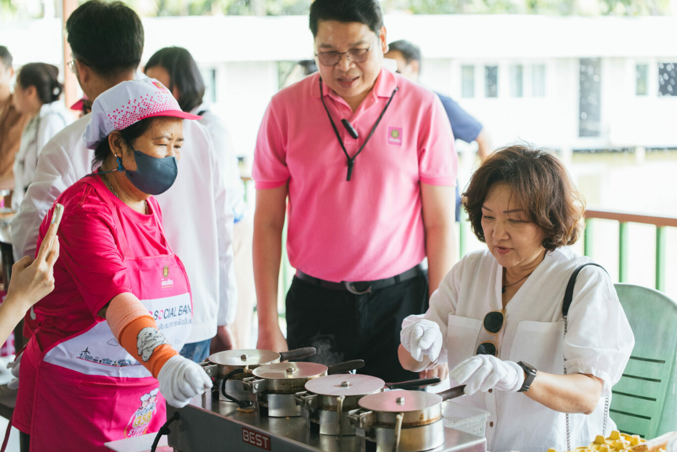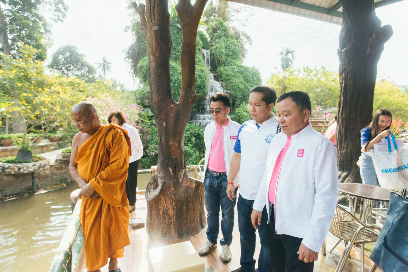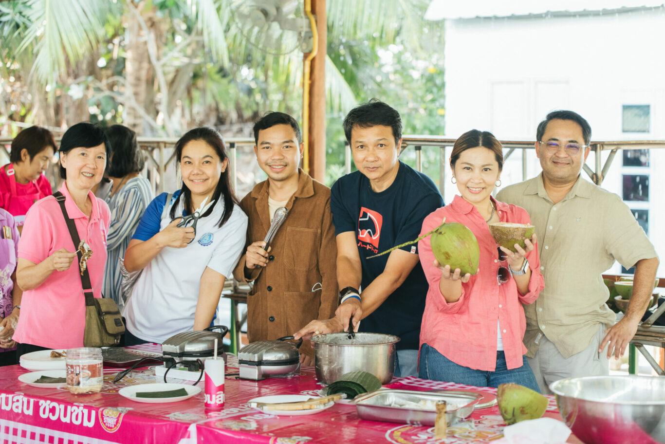 สำหรับกิจกรรม One Day Trip Econmass X GSB เพื่อสังคม ตอน สวนแก้วสู่สวนบัว ได้เชิญชวนสมาชิกสมาคมผู้สื่อข่าวเศรษฐกิจในครั้งนี้กว่า 40 คน นำโดยนายกฤษณะพงศ์ พงศ์แสนยากร นายกสมาคมผู้สื่อข่าวเศรษฐกิจ พาคณะ “ชิม ช้อป ชิลล์” ไปกับอาหาร-เครื่องดื่มที่อร่อย หาทานได้ยาก เช่น ขนมเบื้องญวณ เมี่ยงคำ บ้าบิ่น และ ชื่นใจกับน้ำตาลสด และยังเป็นแหล่งขายสินค้าชุมชน ที่นำมาจำหน่าย ทั้งมะม่วงยายกล่ำที่เป็นของดีเมืองนนท์ และผลไม้อื่น ๆ มากมาย