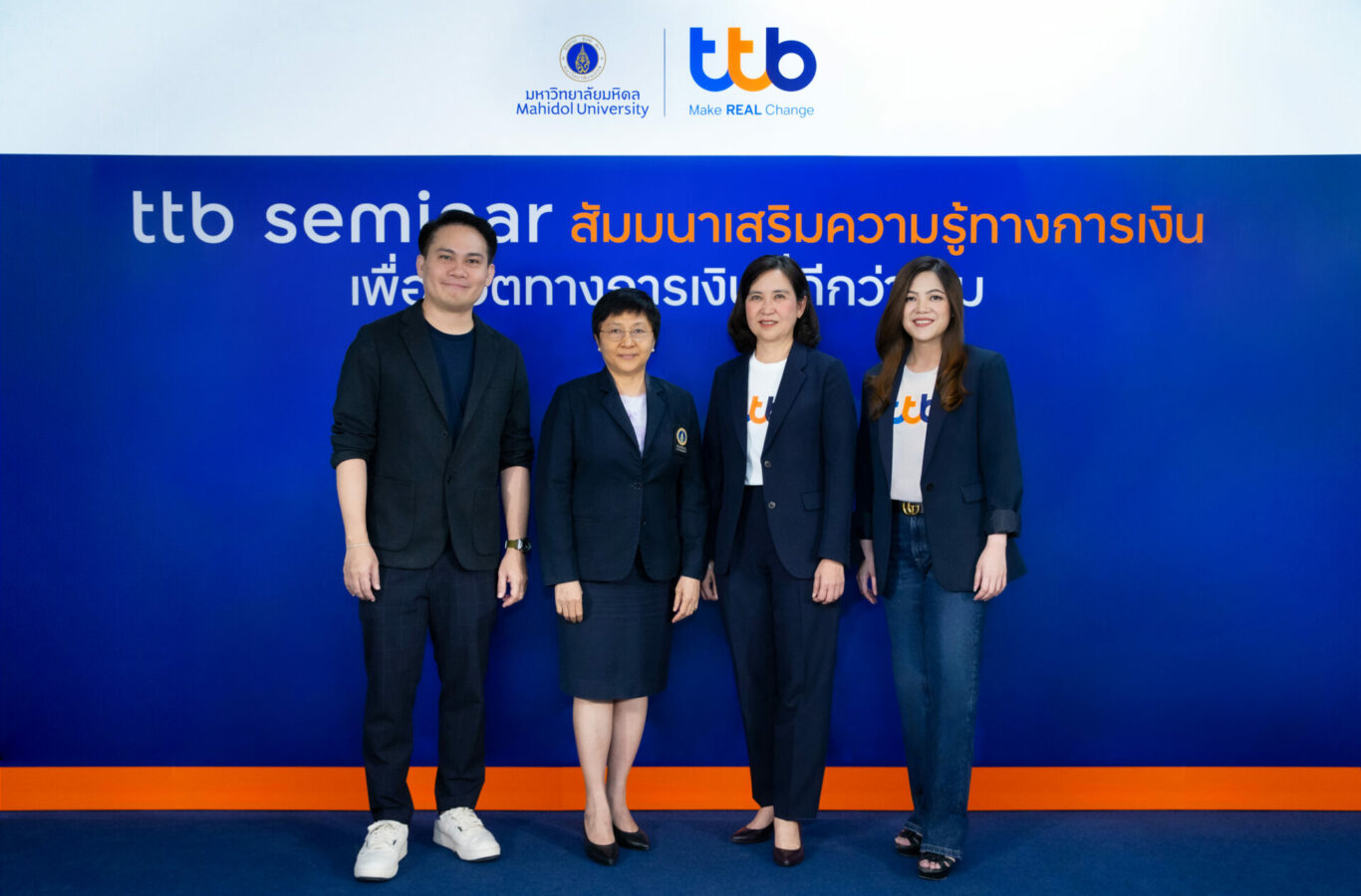 นครปฐม 5 กุมภาพันธ์ 2567 — ทีเอ็มบีธนชาต หรือ ทีทีบี เสริมความรู้ทางการเงินให้กับบุคลากรมหาวิทยาลัยมหิดล หนึ่งในสถาบันการศึกษาที่ร่วมลงนามใช้บริการสินเชื่อสวัสดิการอเนกประสงค์ ทีทีบี แบบไม่มีหลักทรัพย์ค้ำประกัน ผ่าน “งานสัมมนาเสริมความรู้ทางการเงิน เพื่อชีวิตทางการเงินที่ดีกว่าเดิม” โดยมี นางสาวสมสวาท ลิขิตปรีดา (ที่ 3 จากซ้าย) หัวหน้าบริหารกลุ่มลูกค้าเงินเดือนและสิทธิประโยชน์ ทีเอ็มบีธนชาต ได้ให้ข้อมูลโซลูชันทางการเงิน “สินเชื่อสวัสดิการรวบหนี้” ที่จะช่วยบริหารจัดการหนี้อย่างเป็นระบบ แบ่งเบาภาระหนี้ และเสริมสภาพคล่อง ด้วยอัตราดอกเบี้ยต่ำพิเศษ และได้รับเกียรติจาก โค้ชหนุ่ม นายจักรพงษ์ เมษพันธุ์ (ซ้าย) The Money Coach มาร่วมแชร์แนวทางการวางแผนและบริหารจัดการทางการเงินฉบับมนุษย์เงินเดือน ที่จะช่วยจัดการรายได้ให้เพียงพอกับรายจ่าย ลดภาระหนี้และวางแผนการออม เพื่อช่วยยกระดับคุณภาพชีวิตของบุคลากรและเจ้าหน้าที่ในสังกัดมหาวิทยาลัยมหิดล ซึ่งได้รับความสนใจเข้าร่วมฟังเป็นจำนวนมาก ตอกย้ำความมุ่งมั่นของทีทีบีที่ต้องการปล่อยสินเชื่ออย่างรับผิดชอบ และส่งเสริมให้พนักงานเงินเดือนมีชีวิตทางการเงินที่ดีขึ้นรอบด้านอย่างแท้จริง