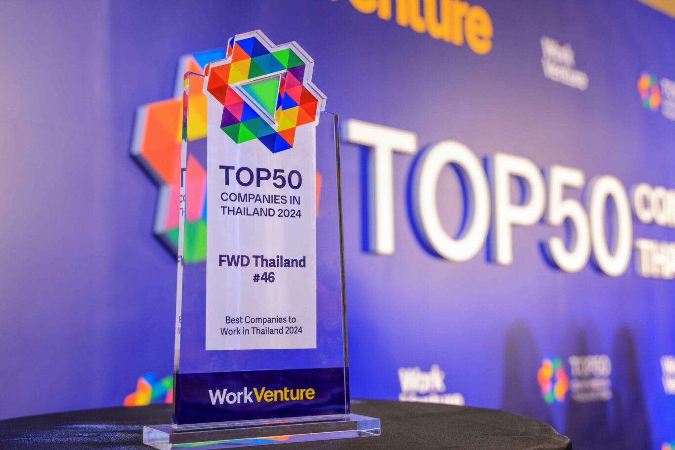 FWD ประกันชีวิต ประเดิมปีมังกรทอง ติดอันดับโพลสุดยอด 50 บริษัทที่คนรุ่นใหม่อยากร่วมงานด้วยมากที่สุดในประเทศไทยประจำปี 2567 (Top 50 companies in Thailand 2024) เป็นครั้งแรก จากการสำรวจผลโหวตของคนรุ่นใหม่ จัดโดย WorkVenture แพลตฟอร์มออนไลน์หางานยอดนิยม สะท้อนความสำเร็จด้วยวัฒนธรรมองค์กรที่เข้าใจในความต่าง เปิดรับในความหลากหลาย และความเท่าเทียม ส่งเสริมนวัตกรรมในการทำงาน พร้อมดูแลพนักงานในทุกมิติ