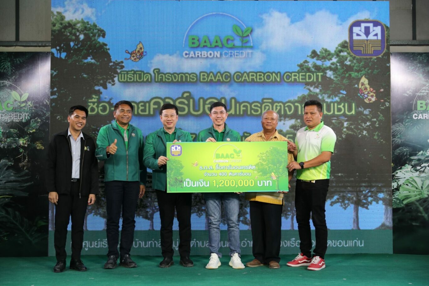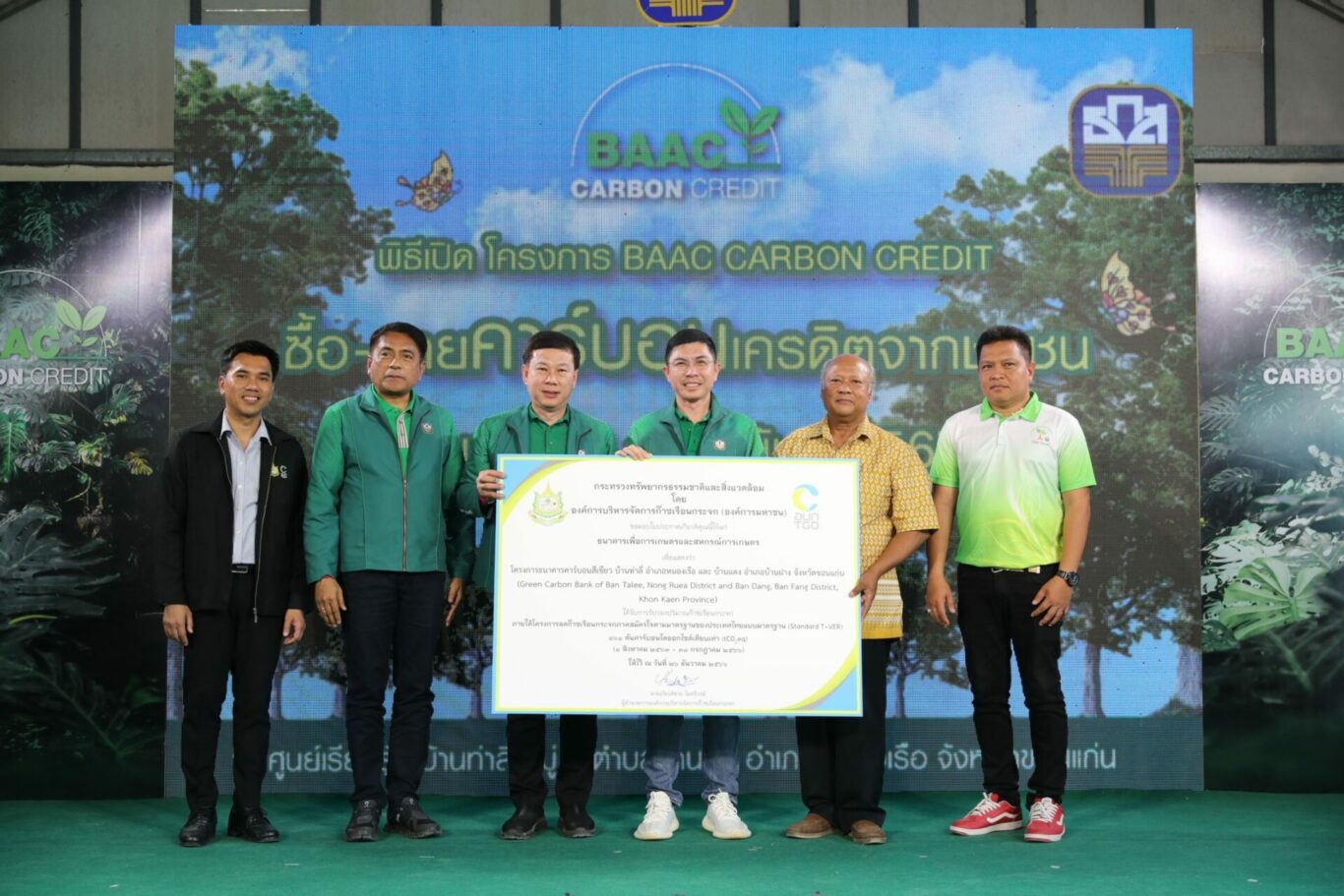 วันนี้ (7 กุมภาพันธ์ 2567) นายฉัตรชัย ศิริไล ผู้จัดการธนาคารเพื่อการเกษตรและสหกรณ์การเกษตร (ธ.ก.ส.) เป็นประธานเปิดโครงการ BAAC Carbon Credit และการซื้อ – ขายคาร์บอนเครดิตภาคป่าไม้อย่างเป็นทางการครั้งแรกในประเทศไทย จากชุมชนธนาคารต้นไม้บ้านท่าลี่และบ้านแดง จังหวัดขอนแก่น จำนวน 400 ตันคาร์บอน (ที่ได้รับการรับรองปริมาณการกักเก็บคาร์บอนเครดิต เมื่อวันที่ 26 ธันวาคม 2566) โดย ธ.ก.ส. รับซื้อในราคากึ่ง CSR ตันละ 3,000 บาท คิดเป็นเงินรวม 1.2 ล้านบาท เพื่อสนับสนุนชุมชนในการดูแลสิ่งแวดล้อม ตอบโจทย์เป้าหมายการขับเคลื่อนประเทศไทยไปสู่ความเป็นกลางทางคาร์บอน ภายในปี ค.ศ. 2050 และบรรลุเป้าหมายการปล่อยก๊าซเรือนกระจกสุทธิเป็นศูนย์ (Net Zero GHG Emission) ในปี ค.ศ. 2065