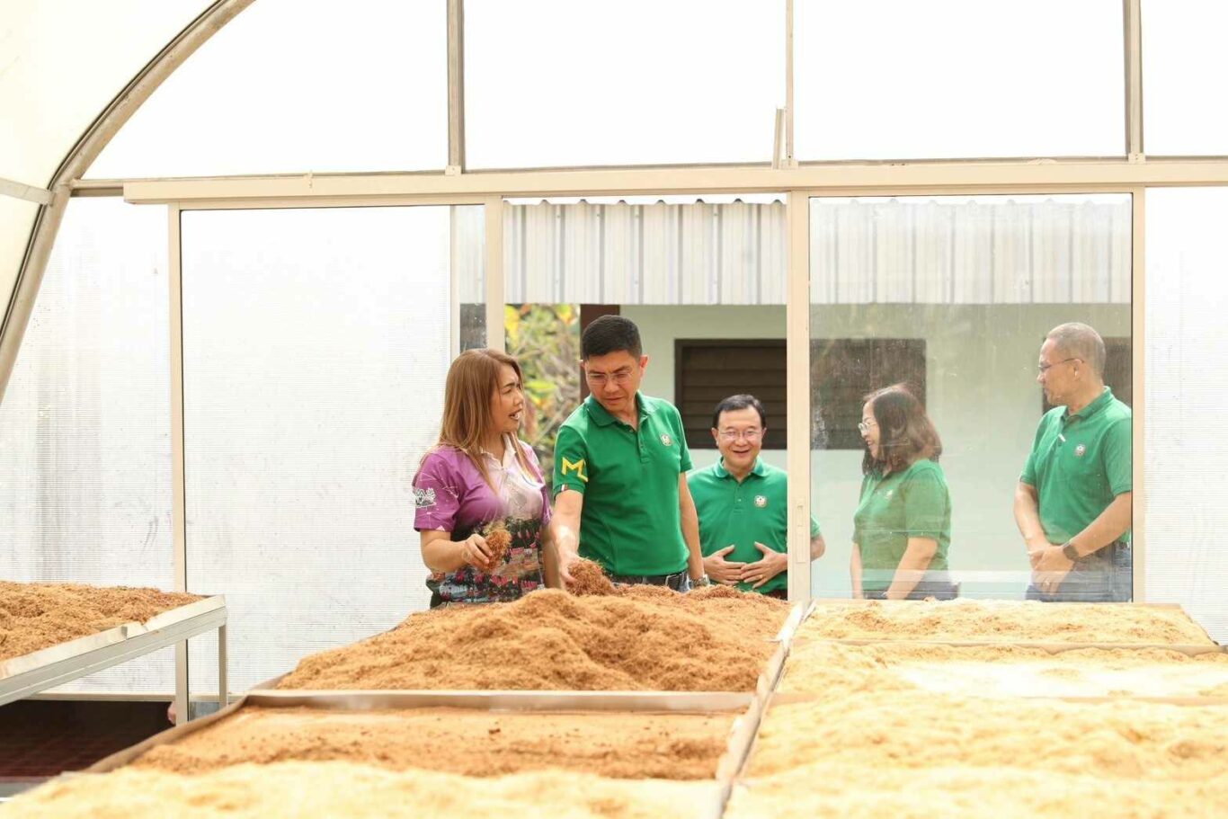 เมื่อวันนี้ 17 กุมภาพันธ์ 2567 นายฉัตรชัย ศิริไล ผู้จัดการธนาคารเพื่อการเกษตรและสหกรณ์การเกษตร (ธ.ก.ส.) เยี่ยมชมชุมชนบ้านสามัคคีธรรม ชุมชนท่องเที่ยว ธ.ก.ส. ที่เปิดให้นักท่องเที่ยวที่สนใจเข้ามาเยี่ยมชมและสัมผัสการท่องเที่ยววิถีชุมชน ซึ่งสมาชิกชุมชนประกอบอาชีพทางการเกษตรและมีการรวมกลุ่มในการประกอบอาชีพเสริมเช่น การนำไม้ไผ่ที่มีมากในพื้นที่มาแปรรูปเป็นเฟอร์นิเจอร์ และนำวัสดุเหลือใช้จากเศษไม้ไผ่มาแปรรูปเป็นผลิตภัณฑ์ไม้ไผ่อัดภายใต้แบรนด์ V-WAN และการจักสานผลิตภัณฑ์จากไม้ไผ่ เช่น เฝือกไม้ไผ่ แก้วน้ำไม้ไผ่ และหลอดไม้ไผ่ รวมถึงการทำหน่อไม้ดองในน้ำเกลือ ที่มีการหมักตามธรรมชาติและเก็บไว้ได้นานนับปี