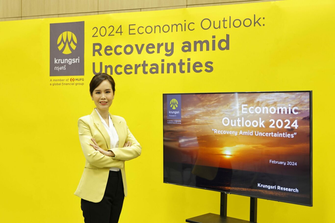 กรุงเทพฯ (23 กุมภาพันธ์ 2567) – วิจัยกรุงศรี โดย ดร.พิมพ์นารา หิรัญกสิ หัวหน้าทีมวิจัยเศรษฐกิจ ธนาคารกรุงศรีอยุธยา จำกัด (มหาชน) แถลงภาพรวมเศรษฐกิจโลกในปี 2567 มีแนวโน้มเติบโตต่ำใกล้เคียงกับปีก่อนที่ 3.1% พร้อมปรับคาดการณ์การขยายตัวของเศรษฐกิจไทยอยู่ที่ 2.7% ขณะที่ภาพรวมเศรษฐกิจในกลุ่มอาเซียน-5 ยังเติบโตดีต่อเนื่องอยู่ที่ 4.7%