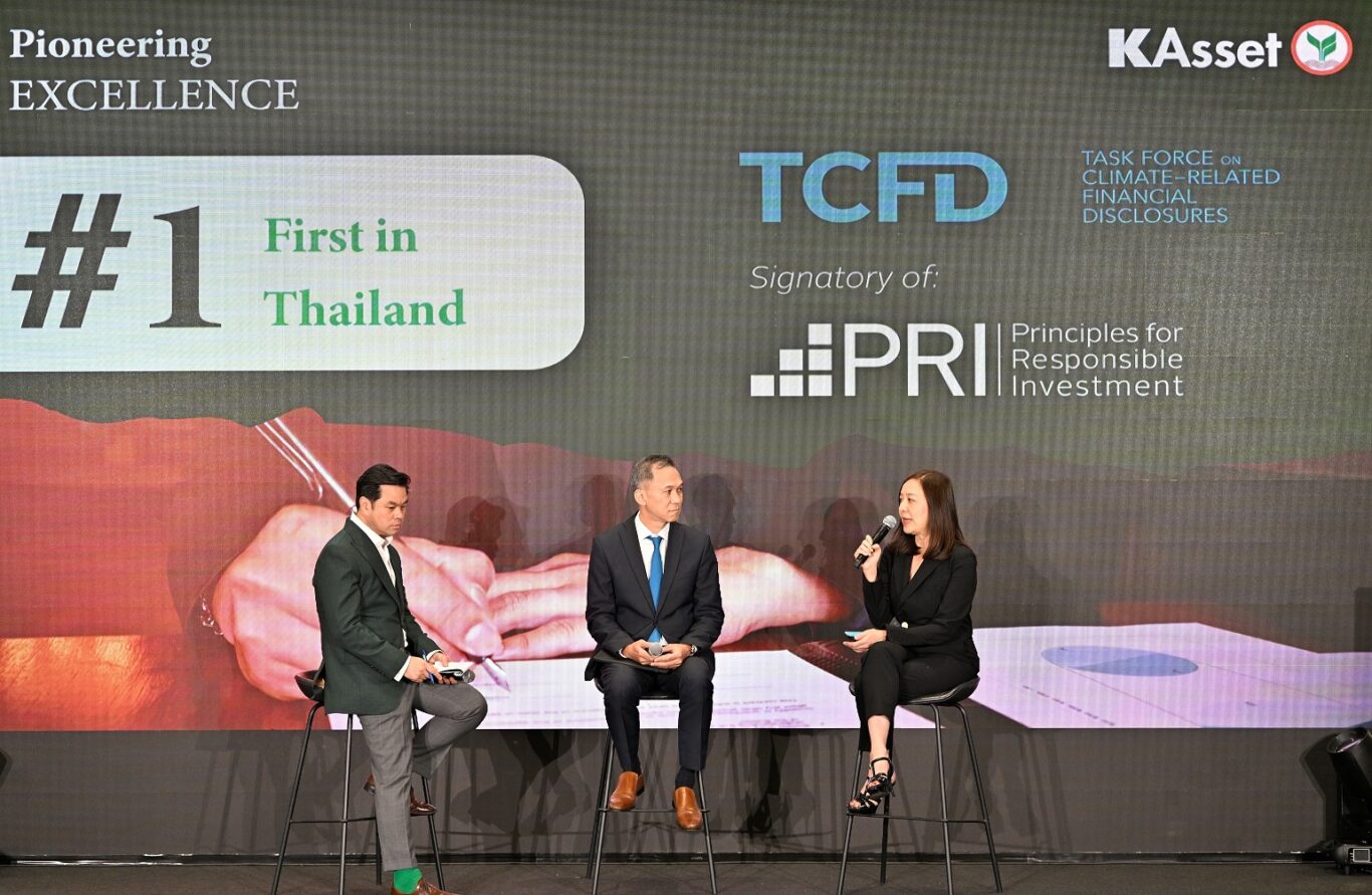 นายอดิศร เสริมชัยวงศ์ ประธานกรรมการบริหาร บริษัทหลักทรัพย์จัดการกองทุนกสิกรไทย จำกัด หรือ KAsset เปิดเผยว่า KAsset ให้ความสำคัญกับการลงทุนอย่างยั่งยืนมาเป็นเวลากว่า 10 ปีนับตั้งแต่ปี พ.ศ. 2556 โดยนำปัจจัยด้านสิ่งแวดล้อม สังคม และธรรมาภิบาล (ESG) มาปรับใช้ในกระบวนการลงทุน โดยเริ่มตั้งแต่การคัดเลือกหลักทรัพย์จนถึงการสร้างพอร์ตการลงทุน และเป็นบลจ.แรกของไทยที่เข้าร่วมลงนาม UN-supported Principles for Responsible Investment (UNPRI) ซึ่งได้รับการสนับสนุนจากองค์การสหประชาชาติ (United Nations) เพื่อแสดงให้เห็นถึงความมุ่งมั่นในการยกระดับการปฏิบัติตามหลักการลงทุนอันเป็นที่ยอมรับในระดับสากล มาตั้งแต่ปี พ.ศ. 2564 อีกทั้งกองทุน ESG ของ KAsset ยังเป็นกองทุนแรกในอุตสาหกรรมที่ยื่นขอความเห็นชอบต่อสำนักงานคณะกรรมการกำกับหลักทรัพย์และตลาดหลักทรัพย์ (ก.ล.ต.) ให้เป็นกองทุนรวมเพื่อความยั่งยืน (SRI Fund) โดยในปัจจุบัน KAsset มีกองทุนที่ได้รับความเห็นชอบให้เป็น SRI Fund จำนวน 6 กองทุน และครองส่วนแบ่งการตลาดเป็นอันดับ 1 ด้วยมูลค่ากว่า 2 หมื่นล้านบาท คิดเป็นสัดส่วน 79% ของทั้งอุตสาหกรรม (ที่มา: สำนักงาน ก.ล.ต. ณ 31 ม.ค. 67)