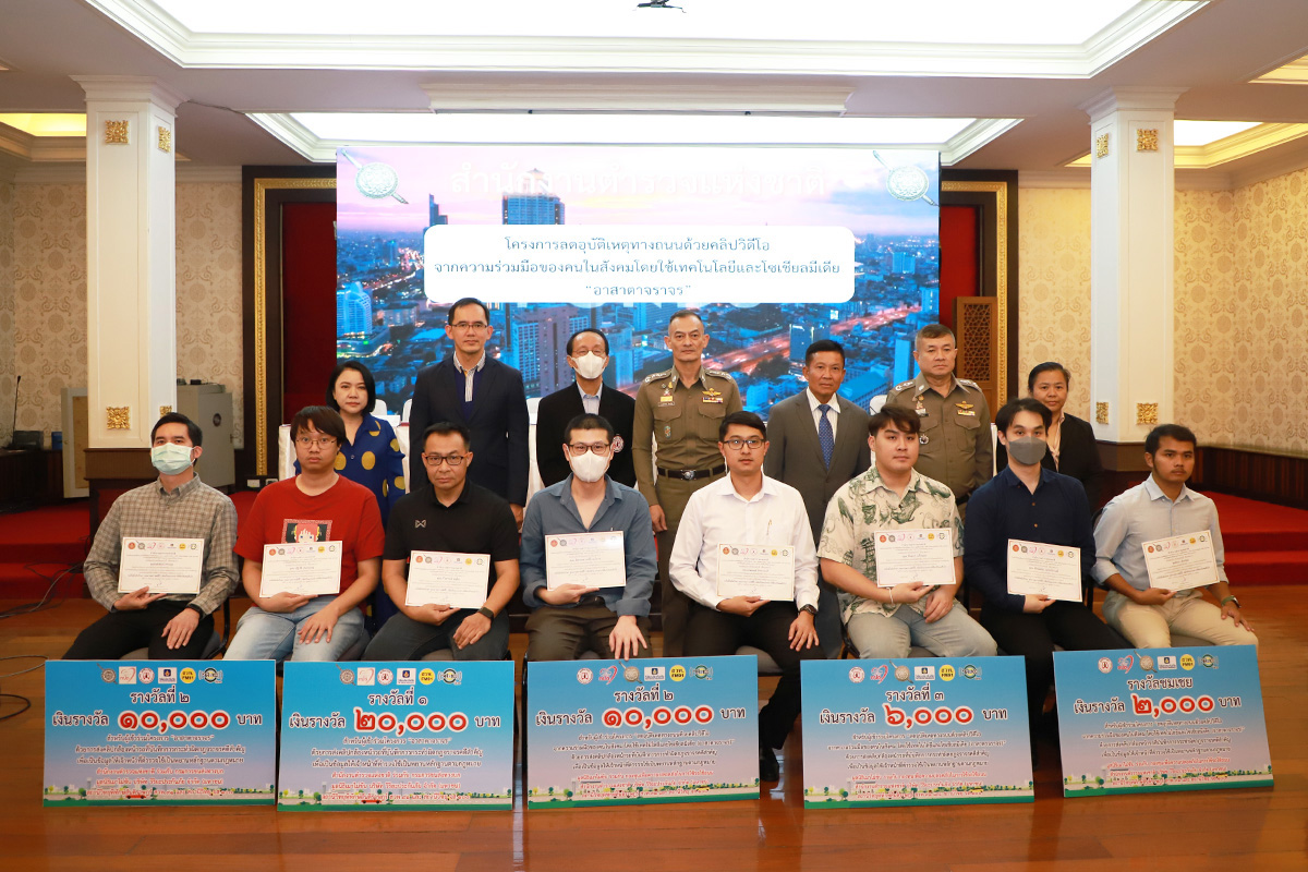 พล.ต.ท.ภาคภูมิภิภัทฒ์ สัจจพันธุ์ ผู้ช่วย ผบ.ตร. พร้อมด้วย นายพงศ์พันธ์ ประภาศิริลักษณ์ รักษาการผู้จัดการฝ่ายสื่อสารองค์กร ผู้แทนจาก บริษัท วิริยะประกันภัย จำกัด (มหาชน) นายแพทย์แท้จริง ศิริพานิช เลขาธิการมูลนิธิเมาไม่ขับ รวมถึงภาคีเครือข่าย จส.100 และ สวพ.91 ร่วมแถลงผลการมอบรางวัลและเกียรติบัตร โครงการอาสาตาจราจร ประจำเดือน ธันวาคม 2566 ให้แก่ เจ้าของคลิปที่ได้รับการคัดเลือก รวมทั้งสิ้น 20 รางวัล เงินรางวัลสูงสุด 20,000 บาท เป็นเงินจำนวนทั้งสิ้น 100,000 บาท ณ ห้องสารสิน สำนักงานตำรวจแห่งชาติ