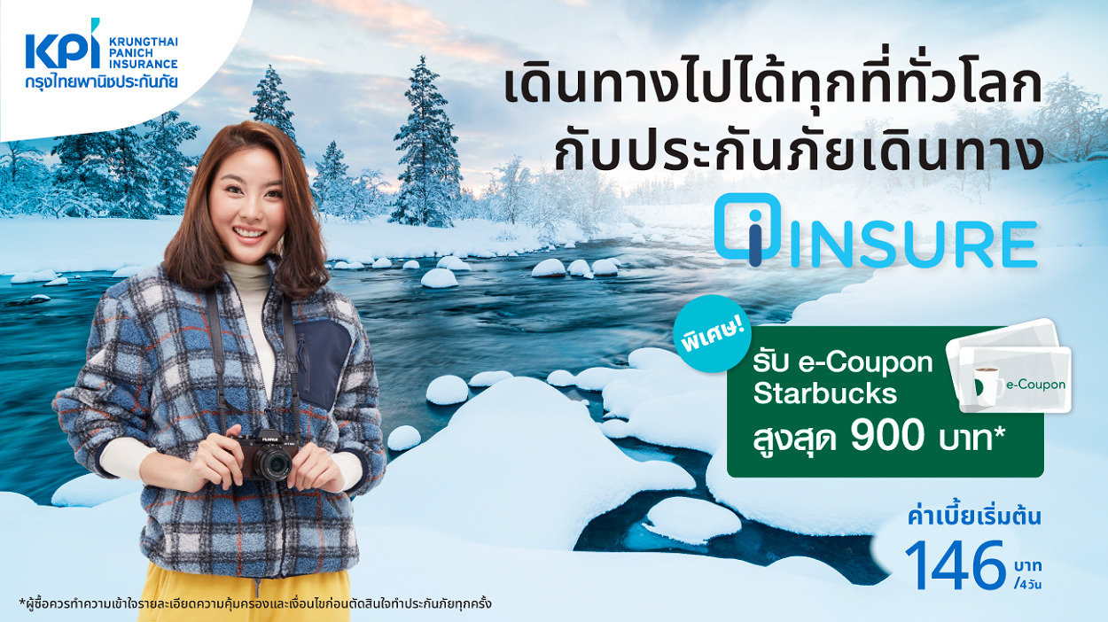 เคพีไออยากให้ทุกการเดินท่องเที่ยวของคุณเต็มไปด้วยความสุข ไม่ว่าคุณจะเดินทางไปที่ไหน ๆ ของทั่วทุกมุมโลก ก็อุ่นใจ เที่ยวได้ชิล ๆ พิเศษสุด! ฉลองครอบรอบ 70 ปี เคพีไอ ประกันภัยเดินทาง i-Insure มอบความสุขให้ 2 ต่อ ต่อที่ 1 รับส่วนลด 10% และต่อที่ 2 รับ e-Coupon Starbucks สูงสุด 900 บาท** ตั้งแต่วันนี้ – 31 ธ.ค. เพียงแค่คลิก https://kpiiinsure.kpi.co.th/iinsure/app สอบถามเพิ่มเติมได้ที่ KPI Contact Center โทร. 0 2624 1111 หรือคลิก www.kpi.co.th