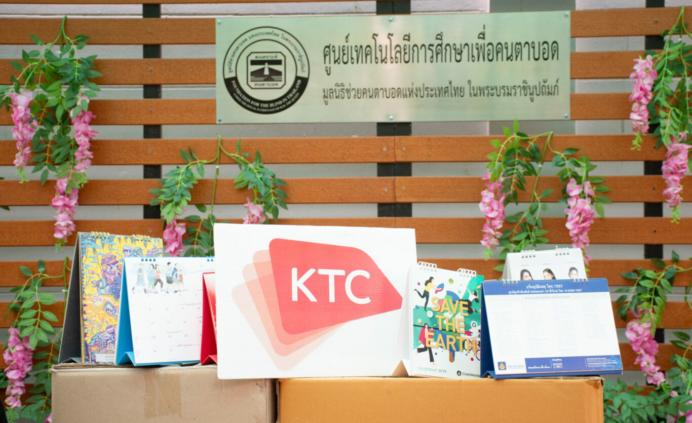 นางสาวปิยะสุดา แคว้นนนทรีย์ (ซ้าย) ผู้บริหารสูงสุด สายงานทรัพยากรบุคคล “เคทีซี” หรือ บริษัท บัตรกรุงไทย จำกัด (มหาชน) เป็นตัวแทนผู้บริหารและพนักงานมอบปฏิทินตั้งโต๊ะปีเก่า ภายใต้กิจกรรม “ปฏิทินตั้งโต๊ะเก่าเราขอ” โดยเปิดรับบริจาคปฏิทินตั้งโต๊ะที่ไม่ใช้แล้วจากผู้บริหารและเพื่อนพนักงาน เพื่อส่งต่อให้กับศูนย์เทคโนโลยีการศึกษาเพื่อคนตาบอด มูลนิธิช่วยคนตาบอดแห่งประเทศไทยในพระบรมราชินูปถัมภ์ เพื่อนำไปผลิตสื่อสิ่งพิมพ์อักษรเบรลล์เพื่อการศึกษาสำหรับผู้พิการทางสายตาโดยมีนางชนิดาภา เพ็ชรรักษ์ (ขวา) ผู้อำนวยการ ศูนย์เทคโนโลยีการศึกษาเพื่อคนตาบอด เป็นผู้รับมอบ ณ ศูนย์เทคโนโลยีการศึกษาเพื่อคนตาบอด ปากเกร็ด เมื่อเร็วๆ นี้