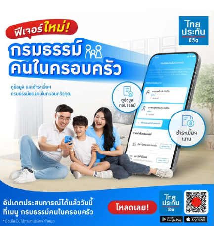 ฟีเจอร์ Family Policy กรมธรรม์คนในครอบครัว เพื่ออำนวยความสะดวกให้กับคนในครอบครัวได้ดูแลกันได้ง่ายและรวดเร็วยิ่งขึ้น เพียงแค่ยื่นคําร้องขอเข้าถึงข้อมูลผ่านแอปพลิเคชัน ไทยประกันชีวิต และได้รับความยินยอมจากคนในครอบครัว พร้อมได้รับการพิจารณาอนุมัติความสัมพันธ์จากบริษัทฯ ลูกค้าจะสามารถเข้าดูข้อมูลกรมธรรม์และชําระเบี้ยประกันภัยแทนคนในครอบครัวผ่านแอปพลิเคชันของตนเองได้ทันที
