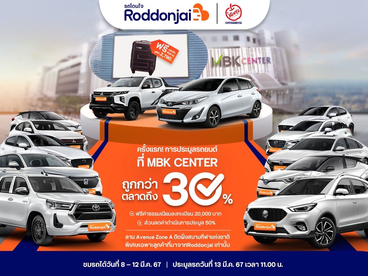 Roddonjai จับมือ แอพเพิล ออโต้ ออคชั่น จัดประมูลรถยนต์มือสองคัดพิเศษสภาพนางฟ้า เสิร์ฟราคาต่ำกว่าตลาดถึง 30%