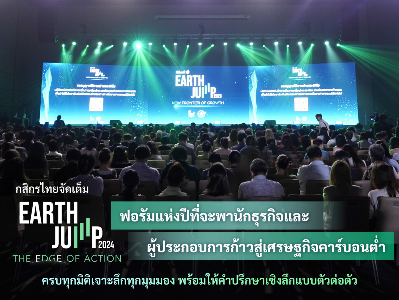 ธนาคารกสิกรไทย จัดงาน “EARTH JUMP 2024 : The Edge of Action” เป็นปีที่ 2 ฟอรัมสุดยิ่งใหญ่แห่งปีที่ห้ามพลาด งานที่จะพานักธุรกิจและผู้ประกอบการก้าวสู่เศรษฐกิจคาร์บอนต่ำ ปรับตัวเพื่อให้อยู่รอดจากผลกระทบของการเปลี่ยนแปลงสภาพภูมิอากาศ ในปีนี้ทุกท่านจะได้เรียนรู้แนวคิดและเทรนด์ธุรกิจจากผู้บริหารองค์กรชั้นนำและเจ้าของธุรกิจกว่า 30 ราย โอกาสในการรับคำปรึกษาเชิงลึกแบบตัวต่อตัวจาก 10 บริษัทระดับโลกและไทย พร้อมกิจกรรมเวิร์กชอป โดยงานจะจัดขึ้นในวันจันทร์ที่ 27 พฤษภาคม 2567 เวลา 9.00 – 17.00 น. ณ สามย่านมิตรทาวน์ฮอลล์ ชั้น 5 สามย่านมิตรทาวน์