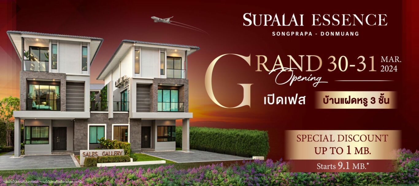บริษัท ศุภาลัย จำกัด (มหาชน) เตรียมจัดงาน “Grand Opening โครงการ…ศุภาลัย เอสเซ้นส์ สรงประภา-ดอนเมือง” พบบ้านแฝดหรู 3 ชั้น สไตล์ Modern Metro ฟังก์ชันครบ 4 ห้องนอน 4 ห้องน้ำ
