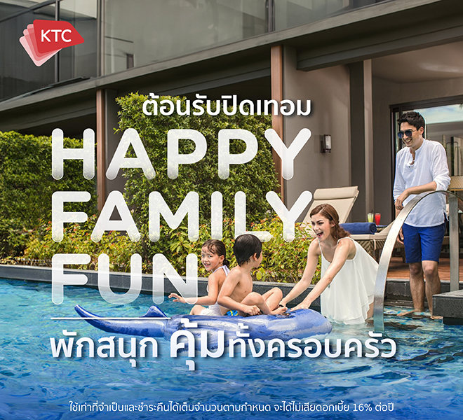 เคทีซีเดินหน้าทำการตลาดเจาะไลฟ์สไตล์นักท่องเที่ยวที่นิยมเดินทางเป็นกลุ่มหรือหมู่คณะ รับ เทรนด์ท่องเที่ยวแบบครอบครัวมาแรง เดินหน้ามอบสิทธิพิเศษสำหรับกลุ่มสมาชิกดังกล่าวต่อเนื่อง พร้อมต้อนรับหน้าท่องเที่ยวคึกช่วงนักเรียนปิดภาคเรียนด้วยแคมเปญ “Happy Family Fun” กับส่วนลดสูงสุด 40% โดยไม่ต้องใช้คะแนนแลก ณ โรงแรมและรีสอร์ตที่ร่วมรายการกว่า 20 แห่งทั่วประเทศ หวังมอบความประทับใจและปักหมุดความเป็นผู้นำบัตรเครดิตสำหรับสมาชิกนักท่องเที่ยวอย่างแท้จริง