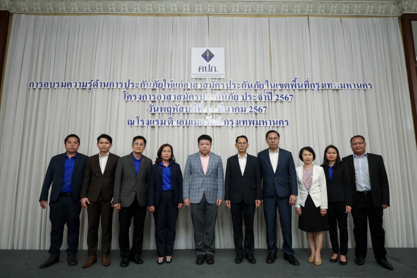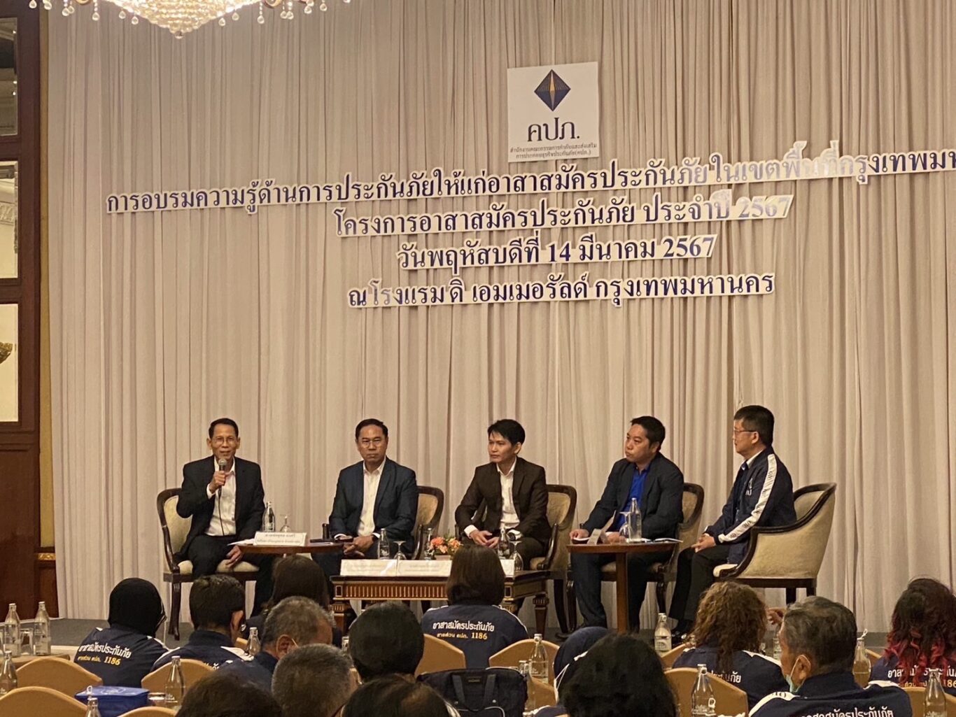 นายอดิศร พิพัฒน์วรพงศ์ รองเลขาธิการ ด้านกฎหมาย คดี และคุ้มครองสิทธิประโยชน์ สำนักงานคณะกรรมการกำกับและส่งเสริมการประกอบธุรกิจประกันภัย (สำนักงาน คปภ.) เป็นประธานเปิดการอบรมความรู้ด้านการประกันภัยให้แก่อาสาสมัครประกันภัยในเขตพื้นที่กรุงเทพมหานคร ตามโครงการอาสาสมัครประกันภัย ประจำปี 2567 โดยมีวัตถุประสงค์เพื่อเป็นการเพิ่มพูนความรู้ ทักษะ ให้แก่อาสาสมัครประกันภัยนำไปเผยแพร่ประชาสัมพันธ์ ช่วยเหลือประชาชนผู้มีสิทธิเรียกร้องตามสัญญาประกันภัย ตลอดจนสนับสนุนการปฏิบัติงานของสำนักงาน คปภ. จัดขึ้นเมื่อวันที่ 14 มีนาคม 2567 ณ ห้องแกรนด์ บอลรูม โรงแรมดิเอมเมอรัลด์ โฮเทล กรุงเทพมหานคร