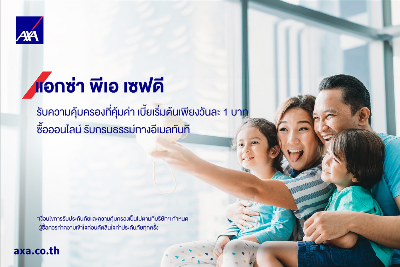 วางแผนอนาคตของคุณและคนที่คุณรักให้ได้รับความมั่นคง พร้อมเสริมเกราะปกป้องเพื่อคุ้มครองคุณภาพชีวิตความเป็นอยู่ของครอบครัวให้ดีมากยิ่งขึ้นได้อย่างง่ายดาย เพียงซื้อแผน แอกซ่า พีเอ เซฟดี ผ่านออนไลน์วันนี้ จ่ายเบี้ยราคาเดียว 365 บาท/ปี พร้อมรับกรมธรรม์ผ่านอีเมลทันที