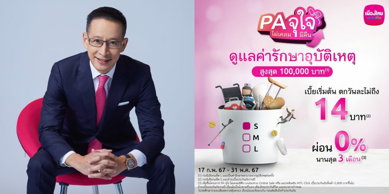 เมืองไทยประกันชีวิต บุกประกันออนไลน์ ส่ง “PA จุใจ ไม่เคลมมีคืน” เติมความมั่นใจรับมืออุบัติเหตุ หากไม่เคลมก็ได้คืน