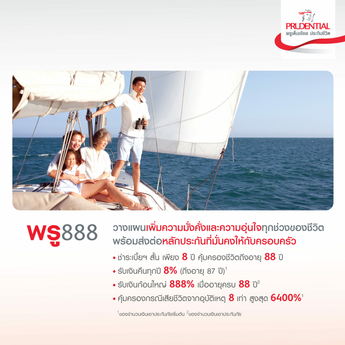 บริษัท พรูเด็นเชียล ประกันชีวิต (ประเทศไทย) จำกัด (มหาชน) หรือ พรูเด็นเชียล ประเทศไทย เปิดกล่องผลิตภัณฑ์ประกันชีวิตกับพรู 888 วางแผนเพิ่มความมั่งคั่ง และความอุ่นใจทุกช่วงของชีวิต พร้อมส่งต่อหลักประกันที่มั่นคงให้กับครอบครัว