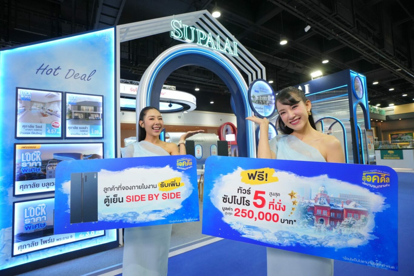 บริษัท ศุภาลัย จำกัด (มหาชน) ยกทัพบ้านและคอนโดฯ สร้างเสร็จพร้อมเข้าอยู่ทั่วประเทศ รวมกว่า 200 โครงการ ส่งแคมเปญฟรีซครั้งใหญ่ “SUPALAI FREEZABLE FESTIVAL” จัดเต็มดีลแน่นๆ แบบหนาวแน่ๆ มอบความคุ้มสุดคูลจนร้องกรี๊ด รับฟรี! ทัวร์ซัปโปโร สูงสุด 5 ที่นั่ง มูลค่าสูงสุด 250,000 บาท* พร้อมฟรี!* ค่าโอนกรรมสิทธิ์ มิเตอร์ไฟฟ้า – น้ำ ค่าส่วนกลาง 1 ปี