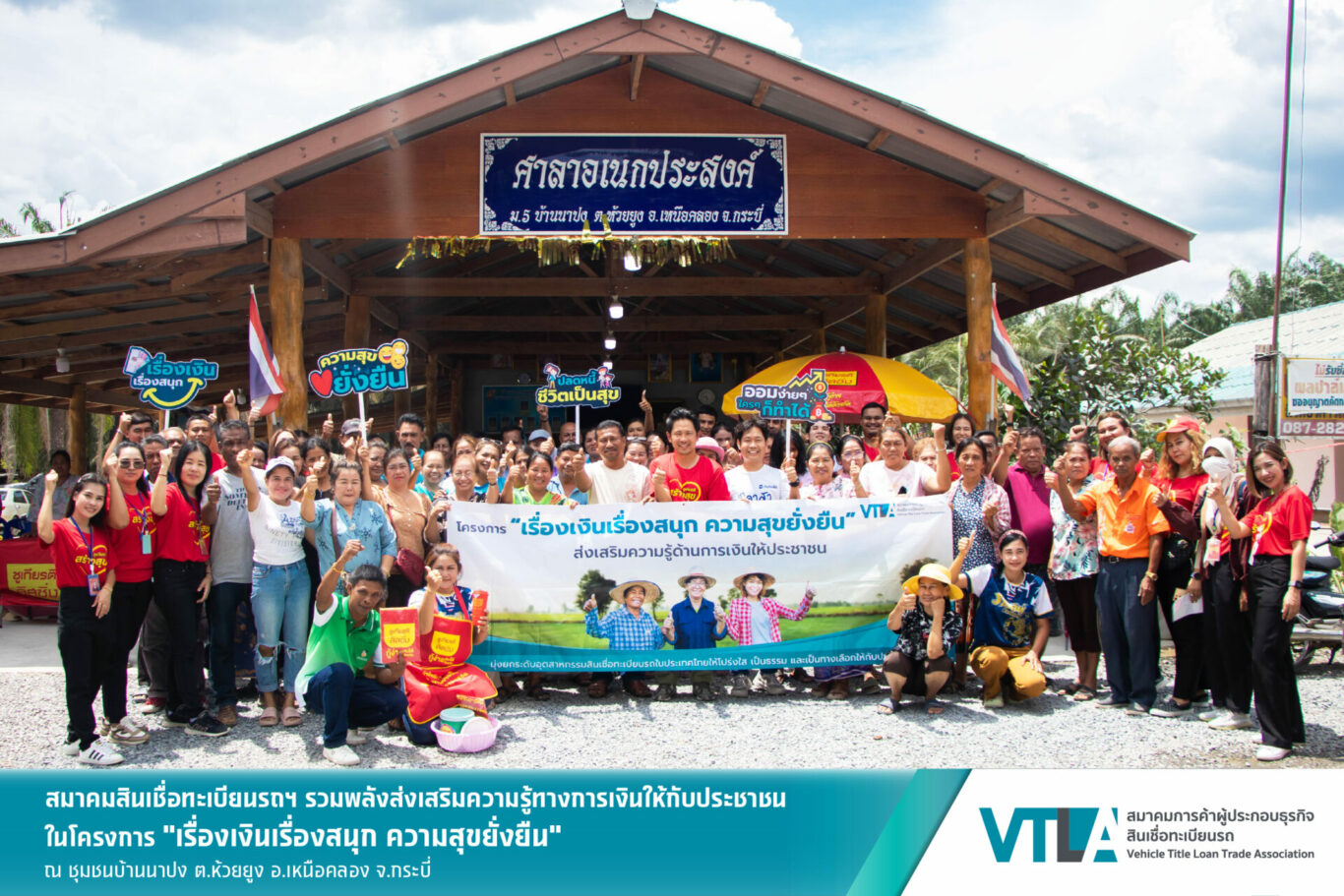 โครงการ “เรื่องเงินเรื่องสนุก ความสุขยั่งยืน” จัดโดย สมาคมการค้าผู้ประกอบธุรกิจสินเชื่อทะเบียนรถ (VTLA) วัตถุประสงค์เพื่อส่งเสริมความรู้ทางการเงินขั้นพื้นฐานให้กับชาวบ้านชาวชุมชนทั่วประเทศ โดยใช้หลักสูตร “ปลดหนี้ ชีวิตเป็นสุข” และ “ออมเงินง่ายๆ ที่ใครๆ ก็ทำได้” ผ่านความร่วมมือของสมาชิกสมาคมฯ ซึ่งปัจจุบันสมาคมมีสมาชิกผู้ประกอบการที่ได้รับใบอนุญาตจากธนาคารแห่งประเทศไทยจำนวนรวม 15 ราย มีสาขารวมกันทั่วประเทศกว่า 11,000 สาขา และมีฐานลูกค้ารวมกันกว่า 5 ล้านราย