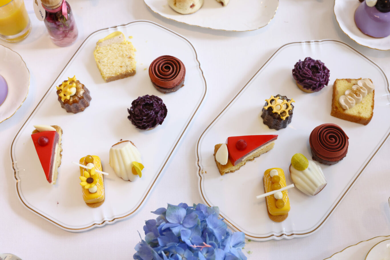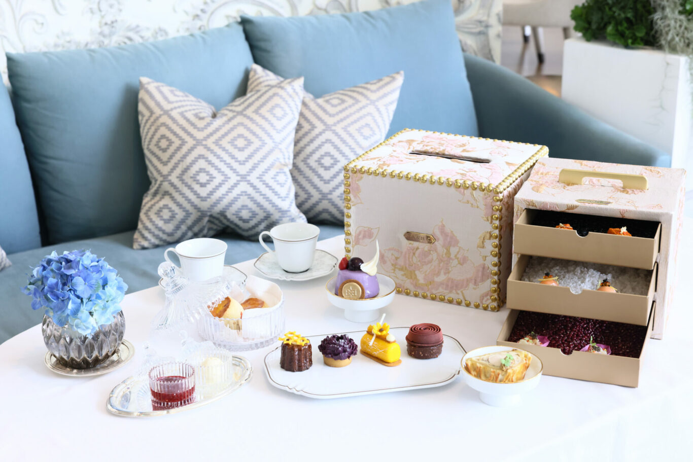 ธรณ ชัชวาลวงศ์ ดีไซน์เนอร์เจ้าของแบรนด์ TAWN C. กล่าวว่า แรงบันดาลใจในการร่วมรังสรรค์เมนูชุดน้ำชายามบ่าย “In Her Garden” ในครั้งนี้ มาจากความงดงามของสวดดอกไม้และเรื่องราวของหญิงสาวผ่านช่วงชีวิต 3 วัย ได้แก่ วัยเด็กของหญิงสาวที่เต็มไปด้วยความสงสัยและไร้เดียงสา วัยที่เติบโตเป็นสาวสะพรั่ง เต็มไปด้วยความมั่นใจ มีสไตล์อันเป็นเอกลักษณ์ของตนเอง และช่วงวัยอันงดงามที่หญิงสาวได้ค้นพบความหลงใหลและตกหลุมรักในทุกสิ่งที่ตัวเองทำ แนวคิดดังกล่าวถูกรังสรรค์เป็นขนมมาเดอลีนไวท์ช็อกโกแลต สอดไส้ครีมมะนาวและพิสตาชีโอ / ฟินองเซียช็อกโกแลต และทาร์ตสตรอว์เบอร์รี เสิร์ฟพร้อมกล่องชุดน้ำชาตัดเย็บจากผ้าไหมลายดอกไม้ตกแต่งด้วยหมุดสีทอง คงความประณีตและเอกลักษณ์ของแบรนด์ TAWN C.