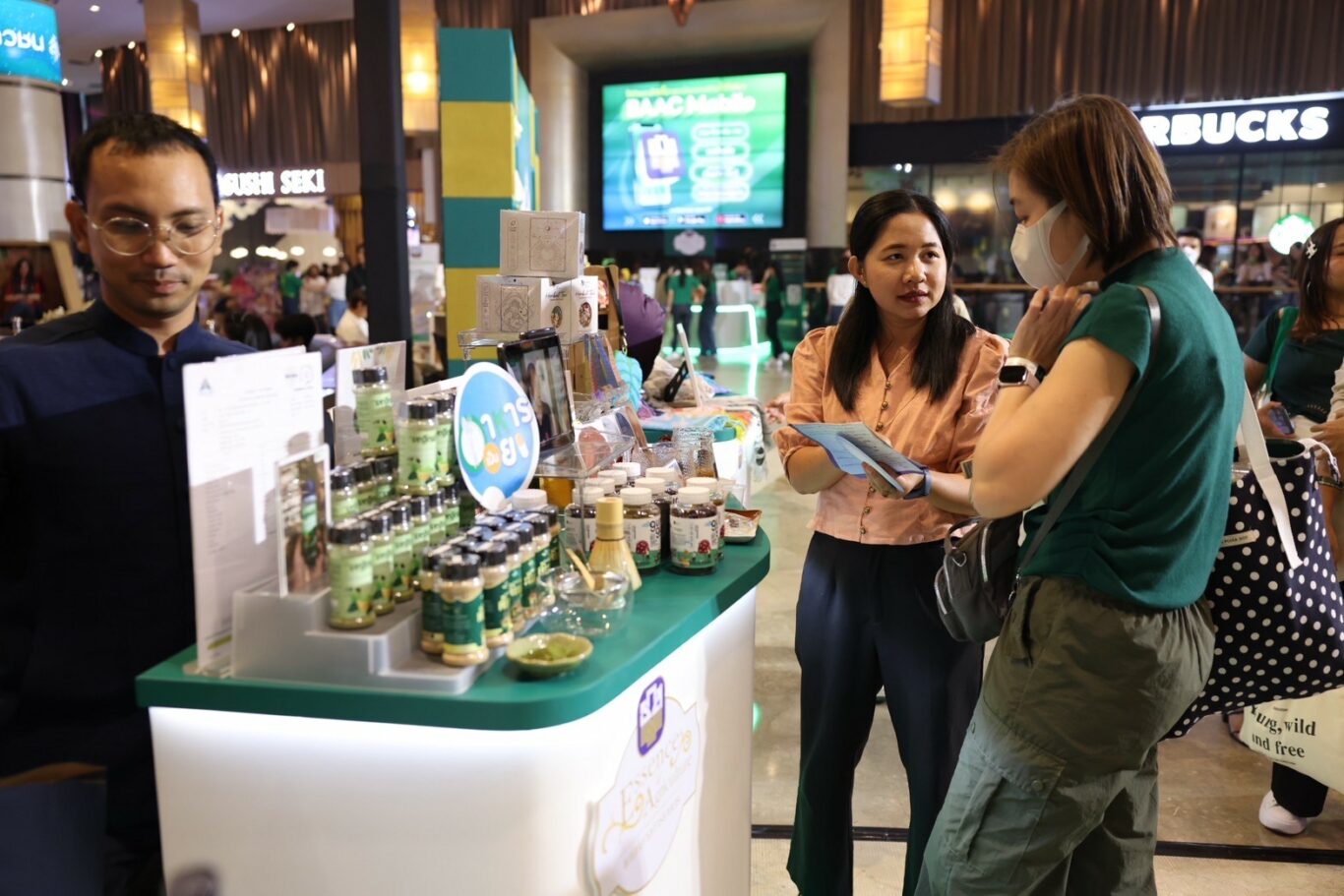 นอกจากนี้ ยังมีการจัดบูธจากผลิตภัณฑ์ที่ได้มาตรฐาน A-Product มาให้ร่วมชม ชิม ชอป กันถึงที่ ได้แก่ ผงโรยข้าวผักเคล แบรนด์ Banana Indy น้ำลูกฟิกส์ แบรนด์ The Fignature Garden ขิงแปรรูป แบรนด์นวลอนันต์ กาแฟแคปซูล แบรนด์ลองเลย โลชั่นทับทิม แบรนด์สวนแสงตะวัน ข้าวโพดราชินีและทับทิมสยามอบกรอบ ผ้าไหมลายบาติก แบรนด์ฅญาบาติก และอรรคิราห์ฟาร์ม เมื่อวันที่ 23 มีนาคม 2567 ณ สยามภาวลัย ชั้น 6 สยามพารากอน กรุงเทพฯ