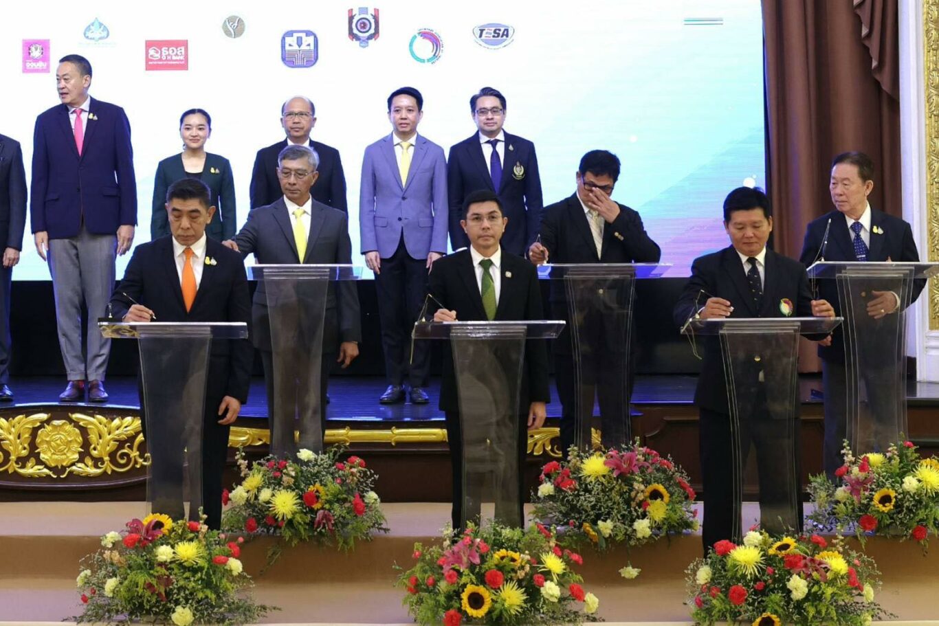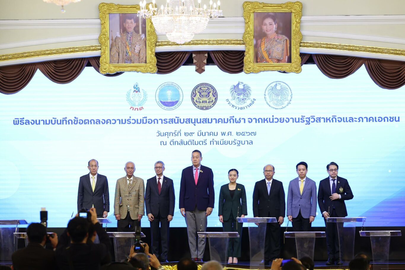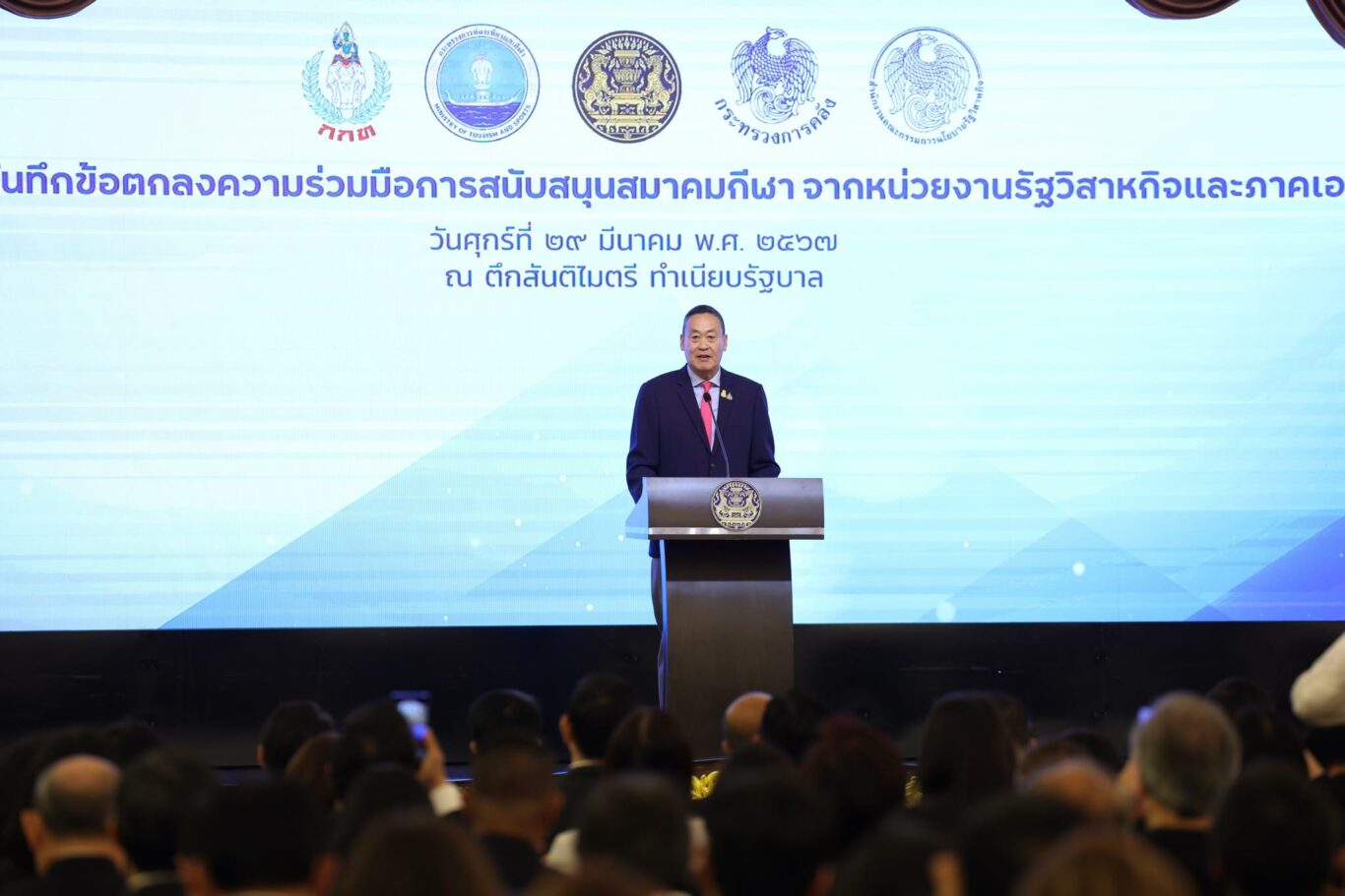 นายเศรษฐา ทวีสิน นายกรัฐมนตรีและรัฐมนตรีว่าการกระทรวงการคลัง เป็นประธานในพิธีลงนามบันทึกข้อตกลงความรวมมือการสนับสนุนสมาคมกีฬา ระหว่าง นายฉัตรชัย ศิริไล ผู้จัดการธนาคารเพื่อการเกษตรและสหกรณ์การเกษตร (ธ.ก.ส.) และ นายนิพนธ์ ชวลิตมณเฑียร นายกสมาคมกีฬาบาสเกตบอลแห่งประเทศไทย เพื่อสนับสนุนสมาคมกีฬาตามโครงการ 1 สมาคมกีฬา 1 รัฐวิสาหกิจ ในการพัฒนาบุคลากรทางการกีฬา การสนับสนุนการจัดการแข่งขันภายในประเทศ การเข้าร่วมการแข่งขันต่างประเทศ การจัดหาเครื่องมือและอุปกรณ์กีฬา การพัฒนาศูนย์กีฬาสาขา รวมถึงการร่วมมือระหว่างองค์กรกีฬาในประเทศไทย ณ ทำเนียบรัฐบาล กรุงเทพฯ เมื่อวันที่ 29 มีนาคม 2567