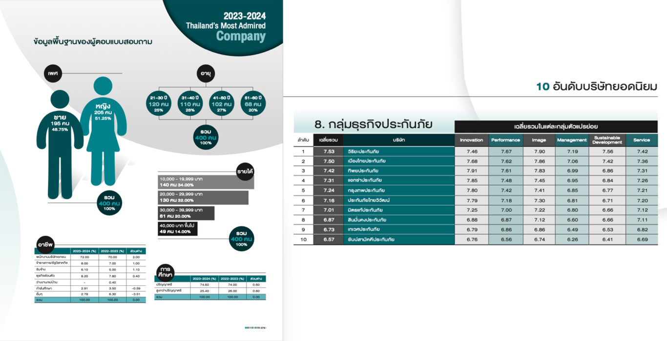 สำหรับรางวัลผลสำรวจ “2024 Thailand’s Most Admired Brand” วิริยะประกันภัย ยังคงรักษาความเป็นผู้นำแบรนด์กลุ่มประกันภัยที่ครองความน่าเชื่อถือที่สุดเป็นอันดับ 1 ต่อเนื่องเป็นปีที่ 21 จากผลสำรวจความนิยม หมวดธนาคารและการเงิน กลุ่มประกันภัย บริษัทฯ ได้รับคะแนนโหวตมากถึงร้อยละ 35.30 และยังได้รับการโหวตให้เป็น Best Brand อันดับ 1 ของการจัดลำดับความสำคัญในทุกๆ หัวข้อ อาทิ การบริการของตัวแทนประกันภัย, มีกรมธรรม์ที่หลากหลาย, เงินชดเชยและสินไหมทดแทน, ความมั่นคงของบริษัท ในส่วนรางวัลสุดยอดองค์กรแห่งปี “2023-2024 Thailand’s Most Admired Company” ซึ่งบริษัทฯ ได้รับรางวัลดังกล่าวต่อเนื่องเป็นครั้งที่ 2 โดยยังคงครองความเป็นอันดับ 1 บริษัทยอดนิยมในกลุ่มธุริกจประกันภัย ด้วยผลคะแนนเฉลี่ยรวมอยู่ที่ 7.53 ซึ่งผลสำรวจพิจารณาจาก ความสามารถในการสร้างสรรค์นวัตกรรม (Innovation), ความสามารถในการดำเนินธุรกิจ (Business Performance), ภาพลักษณ์ (Corporate Image), การบริหารการจัดการ (Management), ความรับผิดชอบต่อสังคม (Sustainable Development) และ การบริการ (Excellence Service) ทั้งนี้ บริษัทฯ จะยังคงมุ่งมั่นพัฒนาการบริการอย่างไม่หยุดยั้ง เพื่อมอบประสบการณ์ความคุ้มค่า ให้แก่ลูกค้าวิริยะประกันภัย ดั่งเจตนารมย์ที่ประกาศไว้ในปี 2567 ว่า วิริยะประกันภัย “มากกว่าความคุ้มครอง คือ ความคุ้มค่า”