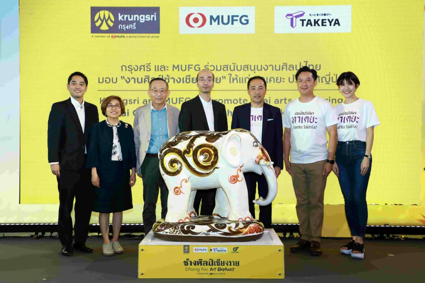 กรุงเทพฯ (4 เมษายน 2567) –กรุงศรี (ธนาคารกรุงศรีอยุธยา จำกัด (มหาชน)) ร่วมกับ มิตซูบิชิ ยูเอฟเจ ไฟแนนเชียล กรุ๊ป (MUFG) สถาบันการเงินที่ใหญ่ที่สุดในญี่ปุ่นและเป็นกลุ่มสถาบันการเงินชั้นนำของโลก นำโดย Mr. Takashi Wakushima (ที่ 4 จากซ้าย), Executive Vice President, Head of Corporate Planning Division of Krungsri ร่วมด้วยนายแพทย์กอบชัย จิตรสกุล (ที่ 3 จากซ้าย) นายกสมาคมฝรั่งเศส เชียงราย และประธานกรรมการ บริษัท กรีนวิง จำกัด พร้อมด้วยคณะผู้บริหารของกรุงศรี และ MUFG ร่วมส่งมอบงานปั้นช้างศิลป์เชียงราย จำนวน 8 เชือก เพื่อจัดตั้งใน 6 สถานที่ท่องเที่ยวต่างๆ ในประเทศญี่ปุ่น ได้แก่ อาคารทาเคยะ กรุงโตเกียว วัดคาคูโอะซัง นิตไทจิ เมืองนาโกย่า พิพิธภัณฑ์ศิลปะ เมืองโอตารุ กรุงฮอกไกโด รุสุสึ รีสอร์ท เมืองอะบุตะ กรุงฮอกไกโด กาล่า ยูซาว่า สโนว์ รีสอร์ท เมืองยูซาว่า จังหวัดนิงาตะ และ HOKKAIDO BALLPARK F VILLAGE กรุงฮอกไกโด ทั้งนี้ เพื่อถ่ายทอดความเป็นเอกลักษณ์อันงดงามของช้างไทยผ่านเครือข่ายของ MUFG และยังเป็นการสานต่อสัญลักษณ์แห่งมิตรภาพระหว่างไทยและญี่ปุ่นอีกด้วย