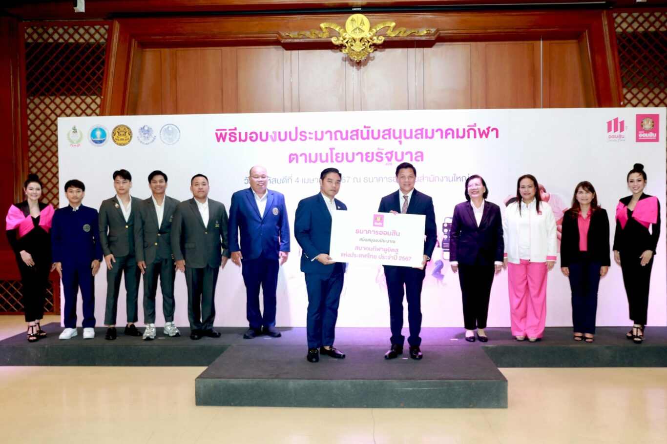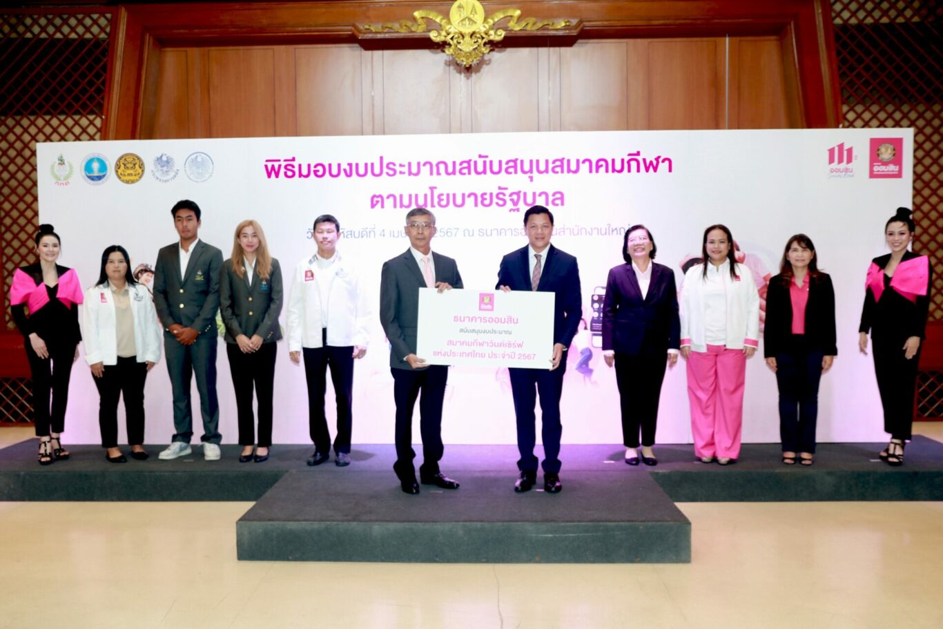 ทั้งนี้ ธนาคารออมสินได้จัดพิธีมอบงบประมาณสนับสนุนแก่ 5 สมาคมกีฬา ซึ่งจะมีการสนับสนุนอย่างต่อเนื่องเป็นระยะเวลา 4 ปี (ปี 2567 – 2570) โดยมีผู้รับมอบ ประกอบด้วย พลเรือโทศรายุทธ แดงเทศ อุปนายกสมาคมกีฬาวินด์เซิร์ฟแห่งประเทศไทย นาวาตรีศรายุทธ พัฒนศักดิ์ นายกสมาคมกีฬายิมนาสติกแห่งประเทศไทย ผศ.ดร.ชาญชัย สุขสุวรรณ์ นายกสมาคมกีฬายูยิตสูแห่งประเทศไทย นายสงวน โฆษะวินทะ นายกสมาคมกีฬายิงธนูแห่งประเทศไทย และนางนฤมล ศิริวัฒน์ นายกสมาคมกีฬาเนตบอลแห่งประเทศไทย ณ ธนาคารออมสินสำนักงานใหญ่ เมื่อวันที่ 4 เมษายน 2567
