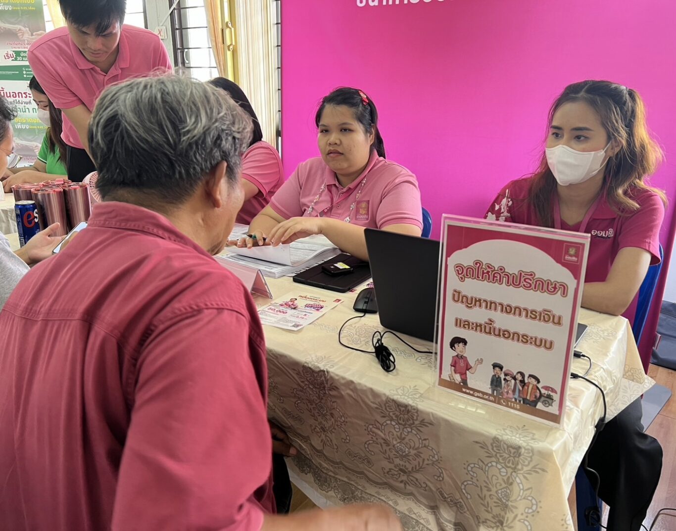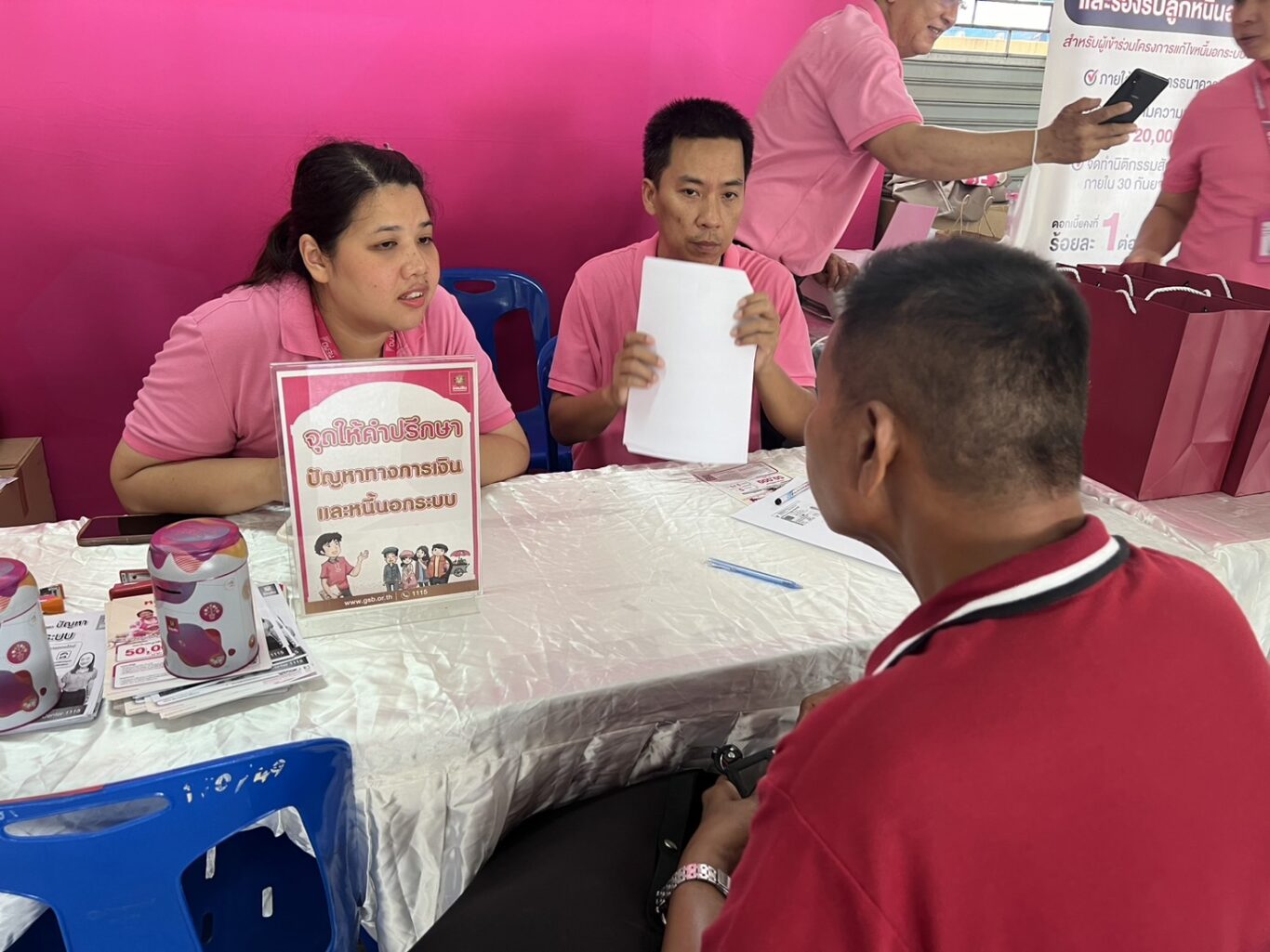 โดยธนาคารออมสินได้ออกบูธให้ความช่วยเหลือทางการเงินผ่านมาตรการสินเชื่อต่างๆ ประกอบด้วย สินเชื่อโครงการธนาคารประชาชนเพื่อช่วยเหลือและรองรับลูกหนี้นอกระบบที่ไกล่เกลี่ยหนี้ในโครงการแก้หนี้นอกระบบของรัฐบาล วงเงินกู้ตามความจำเป็นสูงสุดไม่เกินรายละ 20,000 บาท อัตราดอกเบี้ยคงที่ 1% ต่อเดือน ปลอดชำระเงินต้น 6 เดือนแรก ผ่อนชำระ 36 งวด ไม่ต้องใช้หลักประกัน และสินเชื่อโครงการธนาคารประชาชนเพื่อแก้ไขหนี้นอกระบบ ที่เกิดจากการประกอบอาชีพ หรือหนี้ที่เกิดจากการอุปโภคบริโภค แต่ต้องไม่เป็นการนำไปรีไฟแนนซ์หนี้ในระบบ วงเงินอนุมัติสูงสุดไม่เกินรายละ 50,000 บาท อัตราดอกเบี้ยคงที่ 0.75 – 1.00% ต่อเดือน