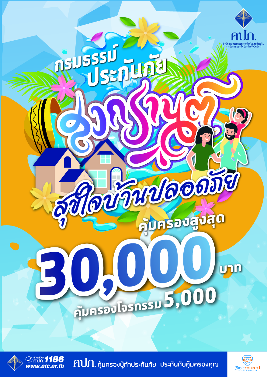 “สำนักงาน คปภ. หวังเป็นอย่างยิ่งว่าในช่วงเทศกาลสงกรานต์ปีนี้ ประชาชนที่จะเดินทางกลับภูมิลำเนาหรือท่องเที่ยวอย่างปลอดภัย มีความสุข และอุ่นใจกับความคุ้มครองแบบจุใจ กับ 2 กรมธรรม์สุดพิเศษ กรมธรรม์ประกันภัยกลุ่มสงกรานต์คลายร้อน (ไมโครอินชัวรันส์) และ กรมธรรม์ประกันสงกรานต์สุขใจบ้านปลอดภัย (ไมโครอินชัวรันส์) ด้วยเบี้ยประกันภัยเพียง 10 บาท เท่านั้น โดยผู้เอาประกันภัยแต่ละรายมีสิทธิได้รับกรมธรรม์ประกันภัยจากผู้ประกอบการที่เข้าร่วมโครงการจำนวน 1 กรมธรรม์ ต่อผู้ประกอบการ 1 ราย เท่านั้น